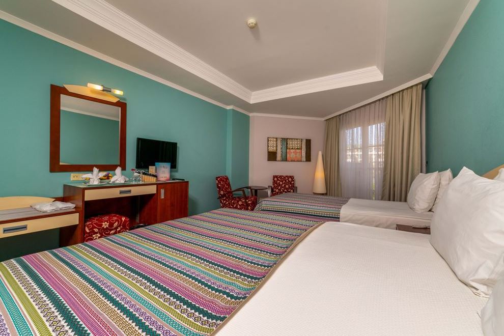 Хотелът разполага с 366 стандартни стаи 28 m² макс. 2 + 2 или 3 + 1. Основното оборудване на всяка стая включва минибар, сателитна телевизия, музикален канал, телефон с директно избиране, сплит климатик, сейф, баня и сешоар. Стаите имат или великолепна гледка към морето или градината. Ежедневно почистване на стаята (от 08:00 до 17:00), ежедневна смяна на кърпи и чаршафи. Според международните правила времето за настаняване е 14:00, а времето за напускане е 12:00. Фамилните стаи в хотела са 104 с площ 40 m² макс. 4 лица или 4 + 1 (бебе). Основното оборудване на всяка стая включва минибар, сателитна телевизия, музикален канал, телефон с директно избиране, сплит климатик, сейф, баня и сешоар. Стаите имат или великолепна гледка към морето или градината. Семейните стаи се състоят от две съседни стаи, всяка със собствен телевизор и климатик. Ежедневно почистване на стаята (от 08:00 до 17:00), ежедневна смяна на кърпи и чаршафи.