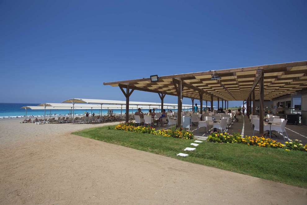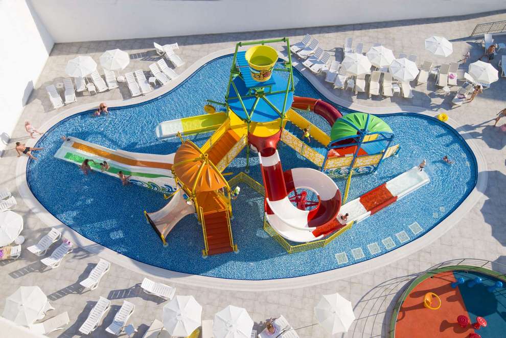 Хотелът разполага със собствен, пясъчно-чакълест плаж, който е само на 50 м от хотела (през подземен проход), и 4 открити басейна, 6 водни пързалки за възрастни и 3 водни пързалки за деца. На басейна и на плажа чадърите, шезлонгите и матраците са безплатни, плажни кърпи на плажа се ползват срещу депозит.