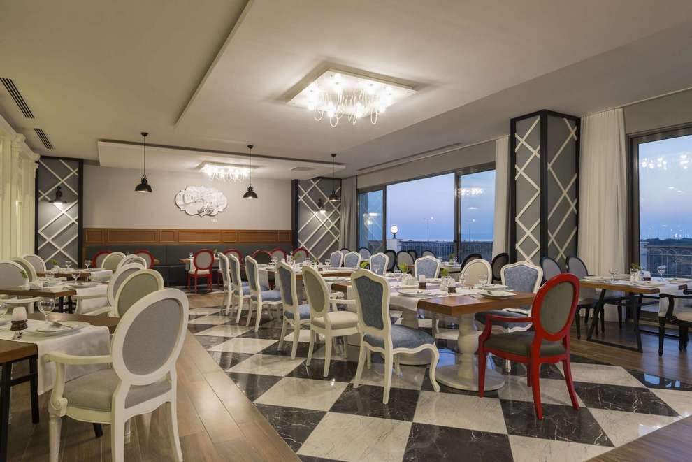 На разположение на гостите са основен ресторант и 2 а`ла карт ресторанта: италиански и турски. Освежаващи напитки и закуски се поднасят в 2 лоби бара, бар на плажа, бар на басейна, диско бар.