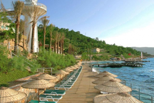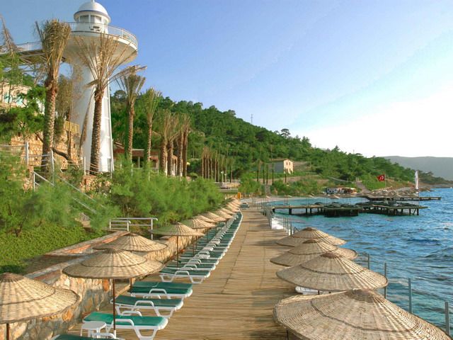 Намира се на 20 км от летище Милас, на 7 км от Бодрум, в залива Торба, на брега на морето.
