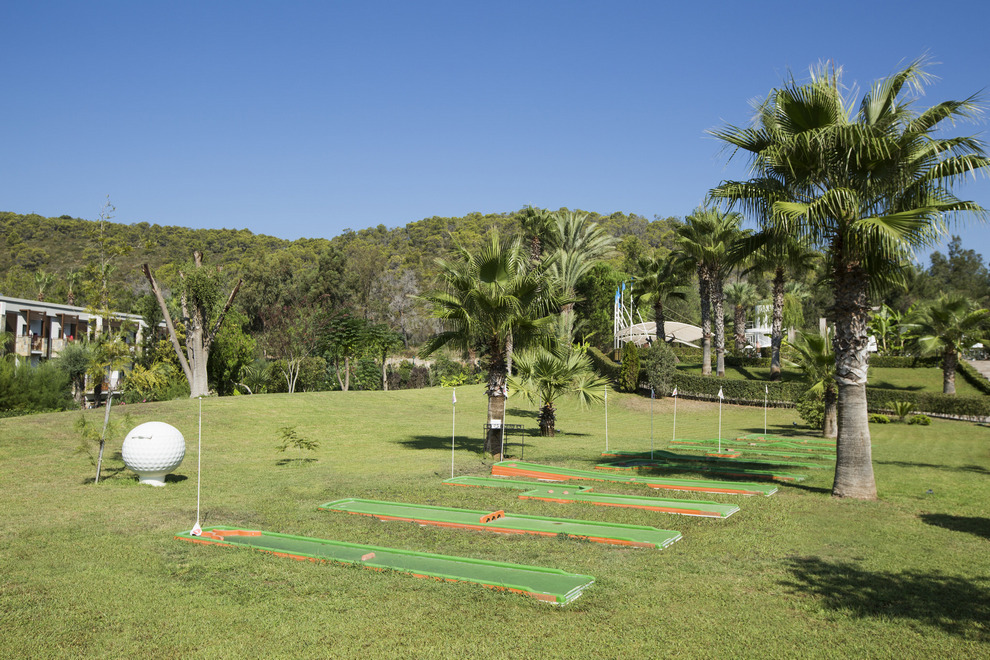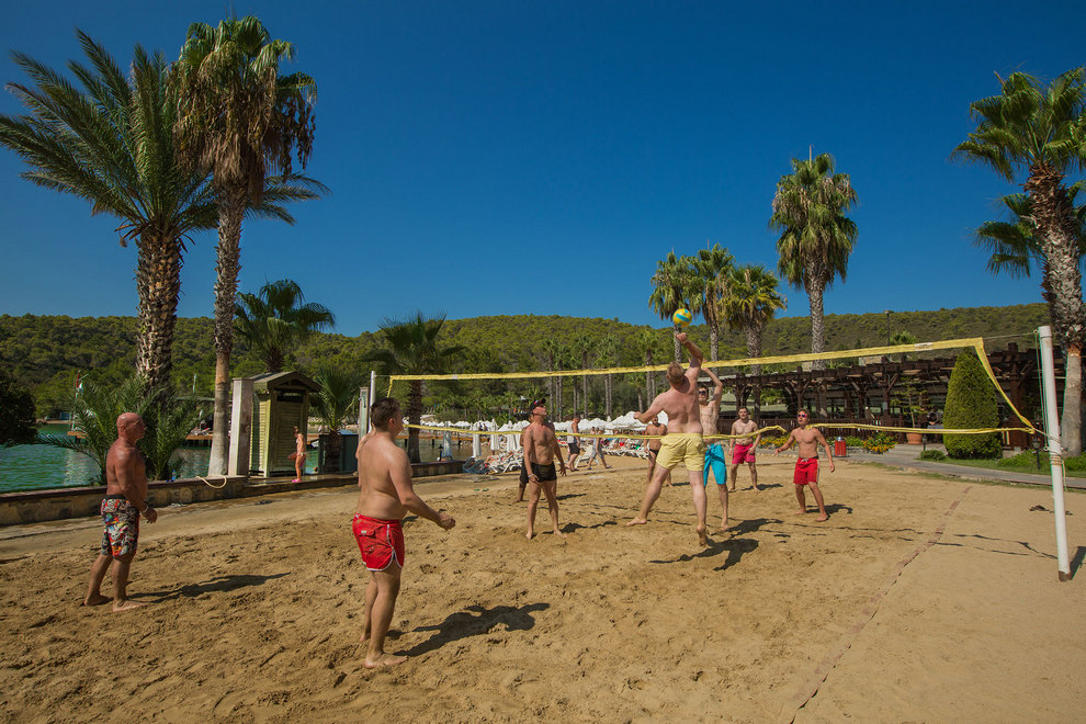 Предлага възможност за практикуване водни спортове, уиндсърфинг, волейбол, баскетбол, аквааеробика, тенис на маса, мини футбол, дартс, джаги, билярд,