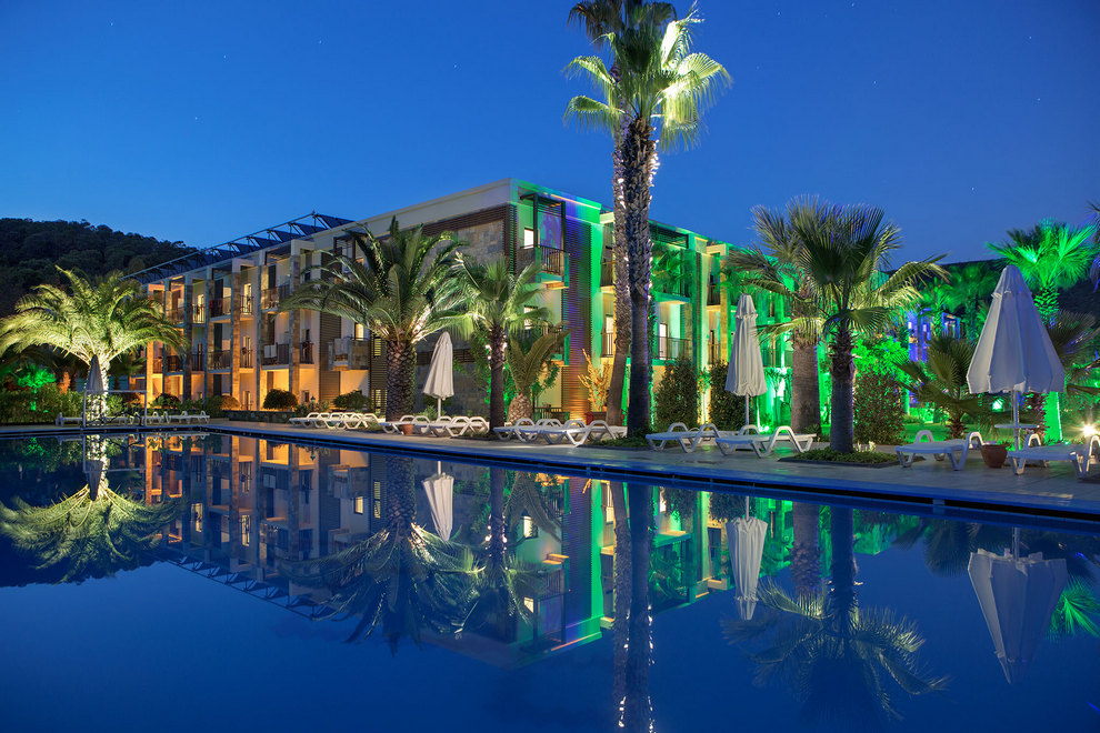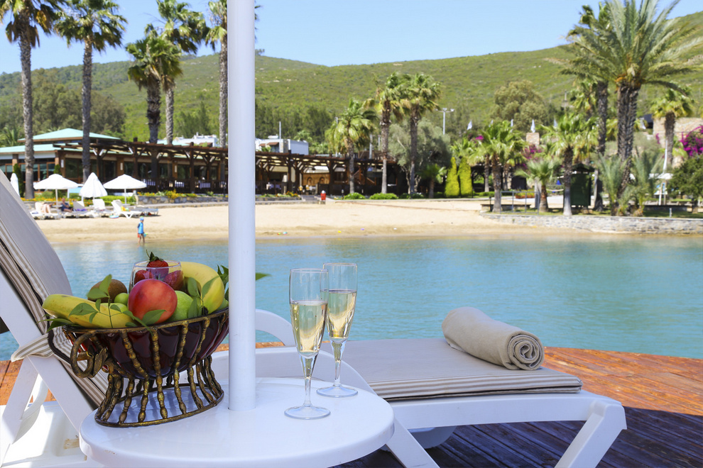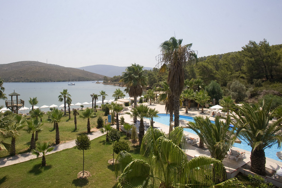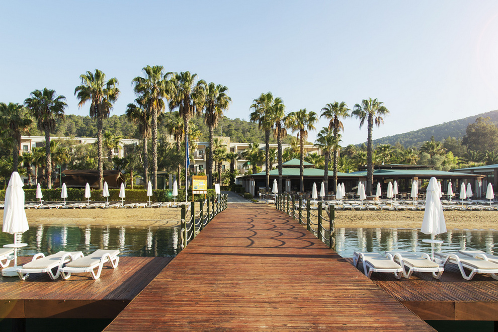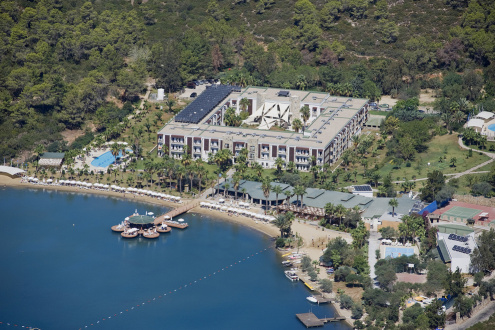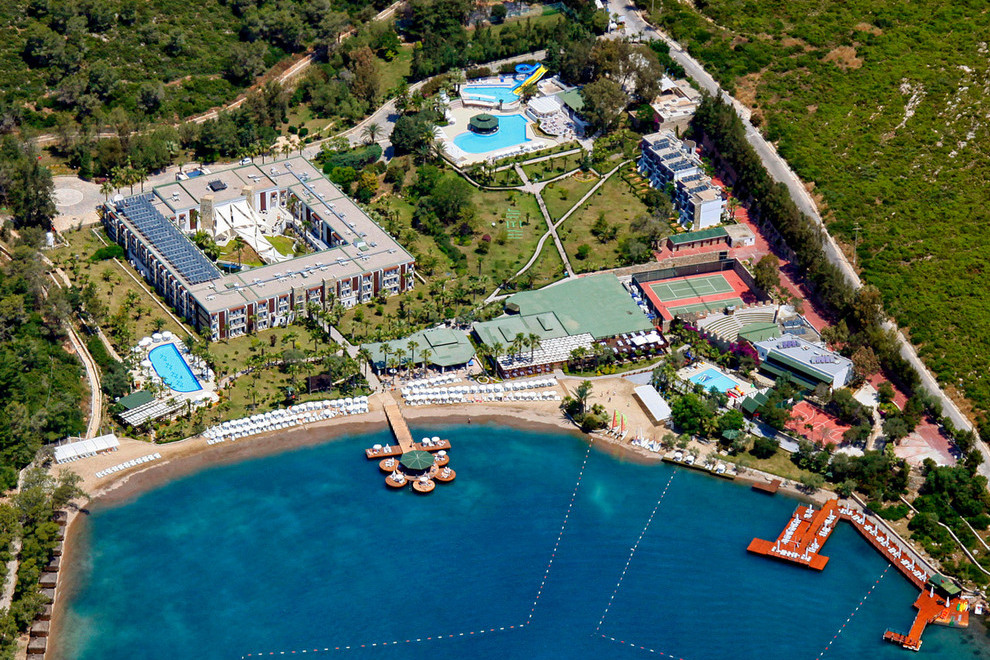 Crystal Green Bay Resort & Spa се намира на 13 км от летище "Милас", в селището Гюверджинлик, на 23 км от центъра на Бодрум, на брега на морето. Построен на площ от 50 000 кв.м, хотелът е направил реновация на стаите през 2021 г.