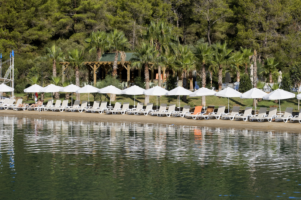 Crystal Green Bay Resort & Spa се намира на собствен плаж с кей. Хотелът има също три открити басейна (единият с морска вода), 2 водни пързалки. Чадъри, шезлонги и матраци на басейните и плажа се ползват безплатно.