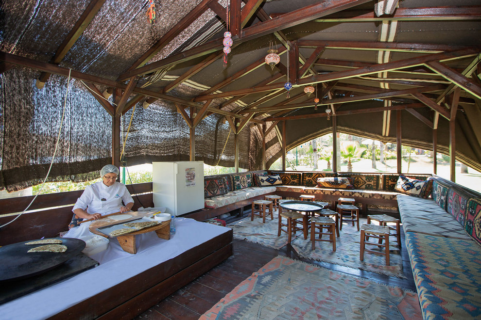 Хотелът разполага с един основен ресторант, 3 а`ла карт ресторанта – италиански, турски, рибен. Разполага със 7 бара - на лоби, Vital bar, Lagoon bar, Thalossa bar, бар на плажа, Clam bar, диско бар. All Inclusive концепцията включва закуска, обяд, вечеря на шведска маса, междинни хранения, алкохолни и безалкохолни напитки местно производство - без лимит (съгласно концепцията на хотела).