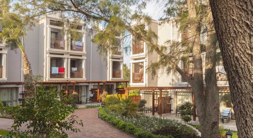 На 33 км от летището, на 40 км от центъра на Анталия, на 6 км от Кадрие, на брега на морето.