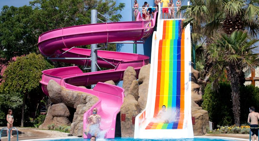 2 открити басейна, 2 водни пързалки, кинозала, лекарски кабинет, фризьорски салон, търговски кът, пералня, химическо чистене, rent-a-car, паркинг, детски буфет (за обяд и вечеря), детски басейн, детска площадка, мини-клуб (4-11 год.), junior клуб (12 – 16, работи само във висок сезон), мини дискотека (20:30 – 21:30), детска количка (платено), детегледачка (платено); Безплатно: сауна, турска баня, джакузи, фитнес зала, аеробика, степ, водна гимнастика, волейбол на плажа, мини футбол, стрелба с лък, тенис на маса, дартс, 4 тенис корта с твърдо покритие, наем на ракети и топки за тенис, скуош, уиндсърф (със сертификат), безмоторни водни видове спорт, анимационни програми, музика на живо в определени дни, дискотека Платeно: масаж, голф (на1 км от хотела), видео игри, стена за катерене, билярд, уроци по тенис, осветление на кортовете за тенис и скуош, моторни водни видове спорт, курс по гмуркане, интернет кафе.