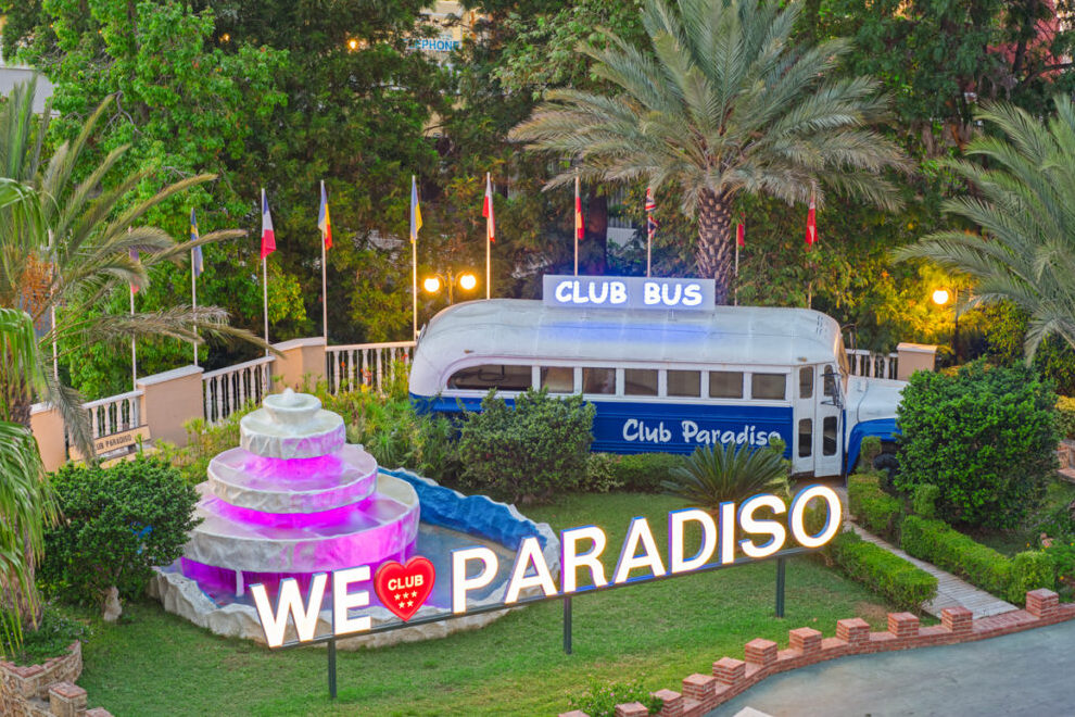 Хотелът се намира на 7 км от центъра Алания и на 110 км от международното летище Анталия. Плажът "Портакал" е на 1 км от Club Paradiso Hotel, а площад "Ататюрк" в Алания е на 6 км.