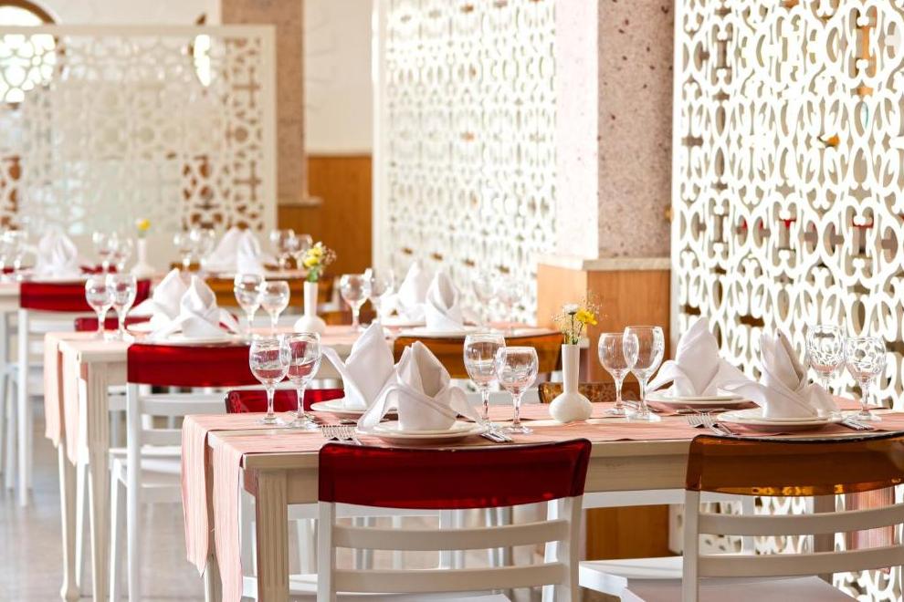 На разположение на гостите са основен ресторант, а`ла карт ресторант (с предварителна резервация), барбекю ресторант (с предварителна резервация), сладкарница, барове. All Inclusive – закуска, обяд, вечеря и междинни хранения на блок маса, местни алкохолни и безалкохолни напитки без лимит.