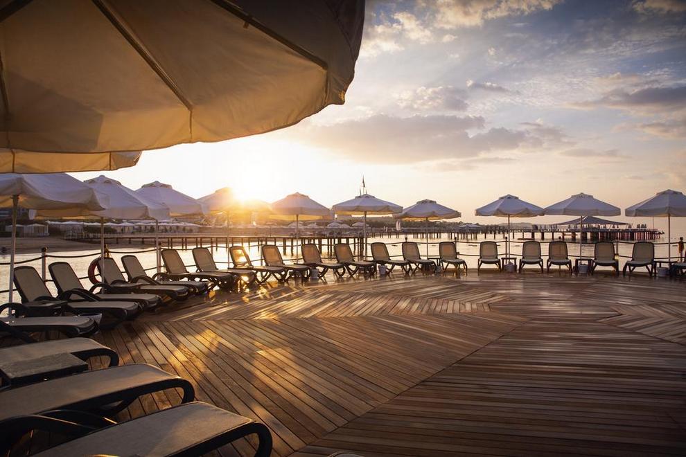 Хотелът има частен плаж на Средиземно море. Два външни басейна и тераса за слънчеви бани.