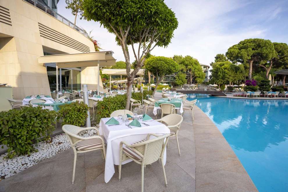 Модерен, модерен хотел с голяма зелена площ, интересна архитектура, голям избор от комфортни стаи за настаняване и високо ниво на обслужване. Луксозните стаи и ексклузивните вили са проектирани специално за уединена почивка. Разположен в Белек, на морския бряг