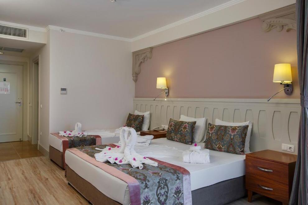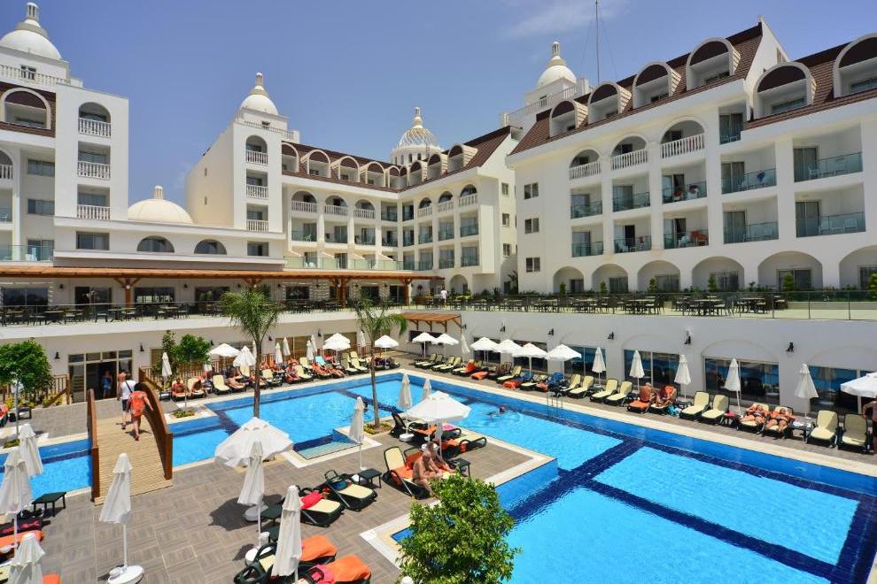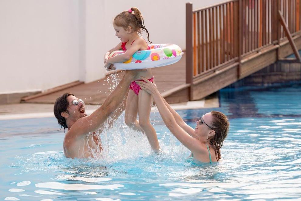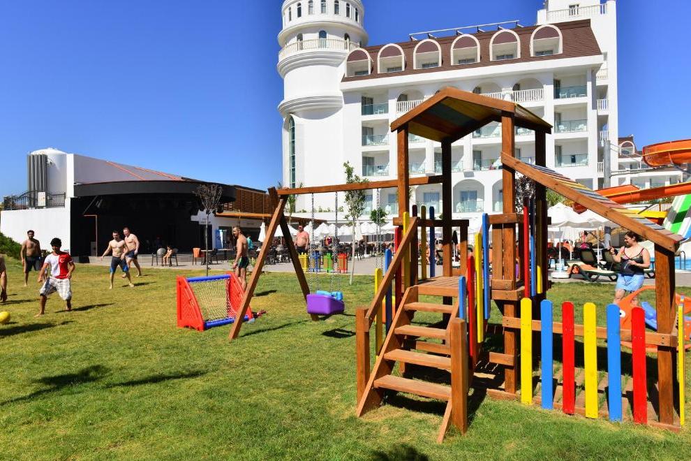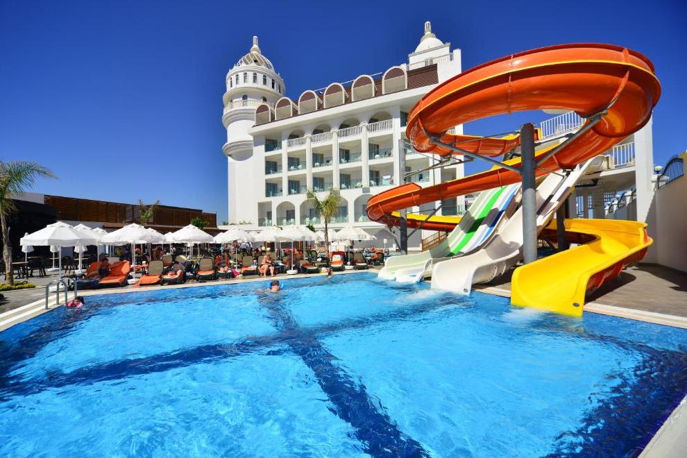 Собствен пясъчен плаж на 500 м от хотела. Има безплатен шатъл. Бар на плажа. 2 открити басейна, 3 водни пързалки.