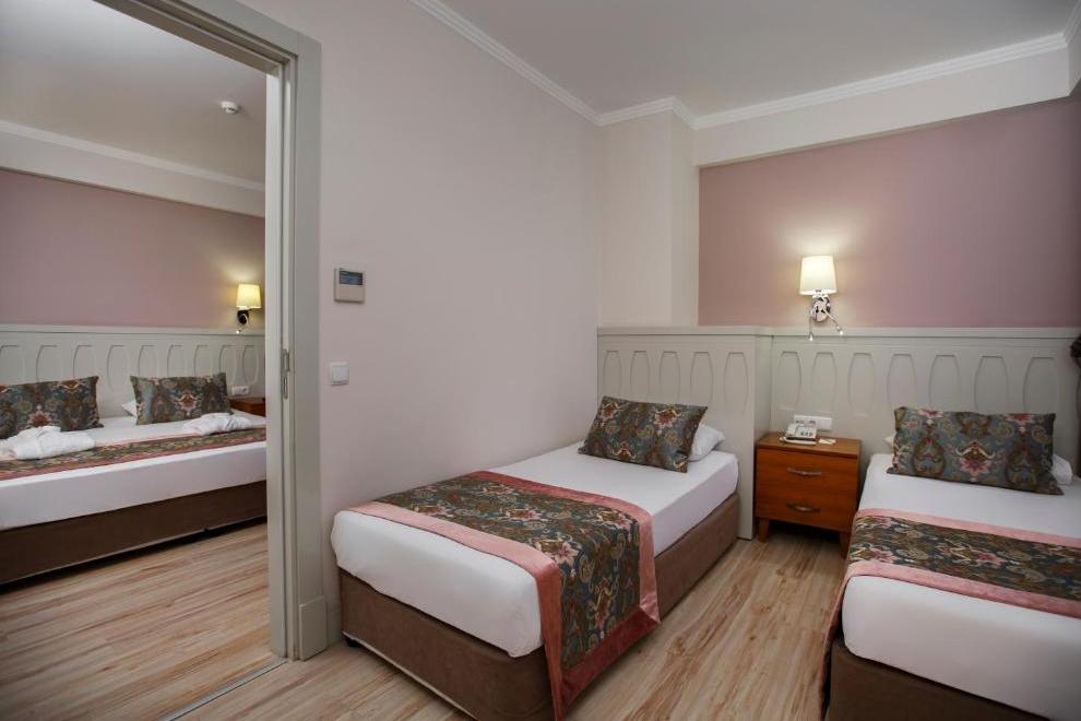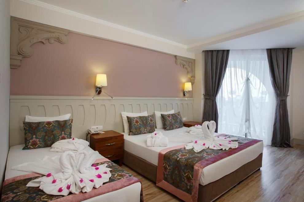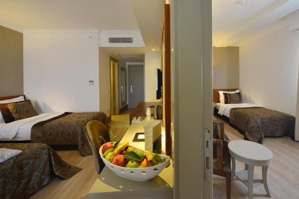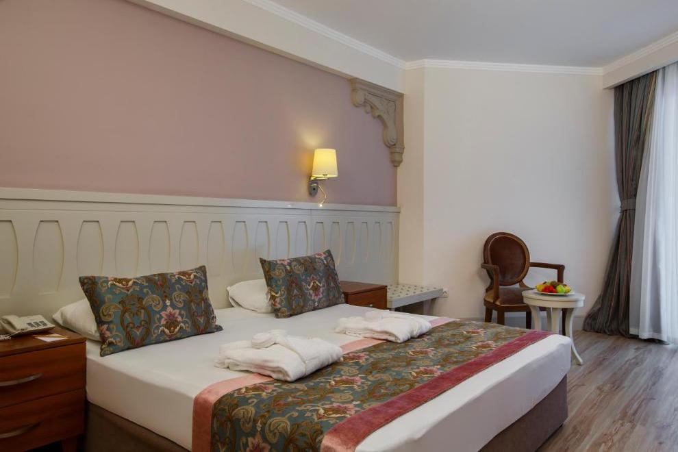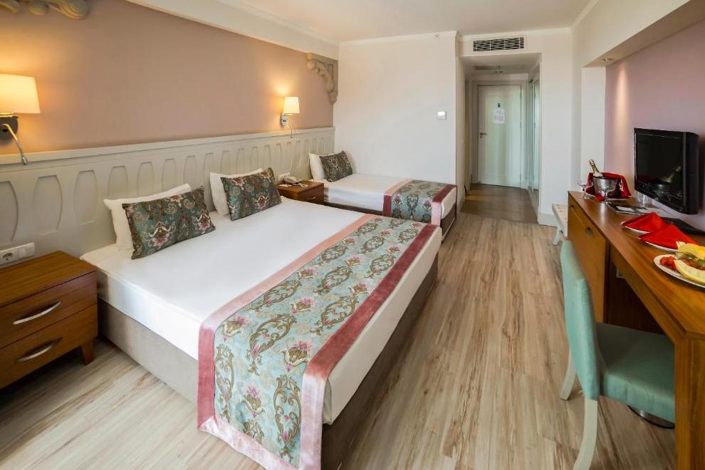 Хотелът се състои от основна 4-етажна сграда, в която са разпределени 262 standard room (от тях 3 са за инвалиди, 32 кв.м) и 72 двустайни family room (2 спални с врата, 44 кв.м). Стаите са оборудвани с телевизор, телефон, сейф (платено), минибар, електрическа кана (набор за кафе и чай), баня с душ и сешоар. Стаите се почистват ежедневно, смяна на спалното бельо – 3 пъти седмично.