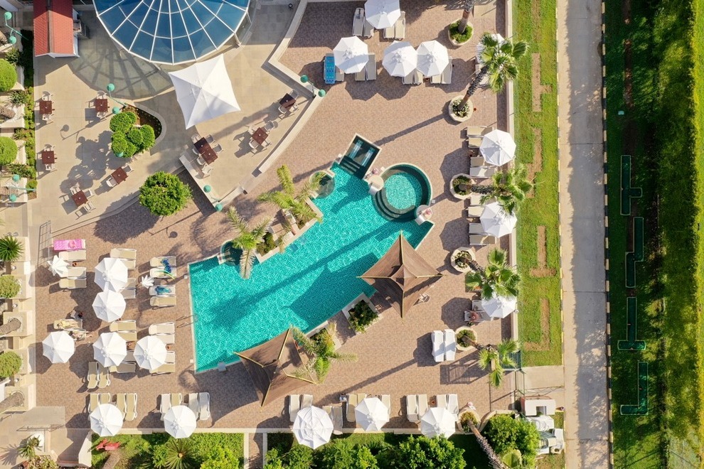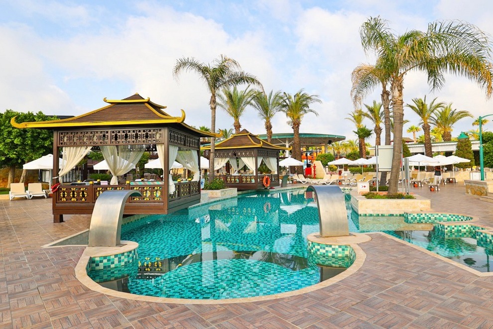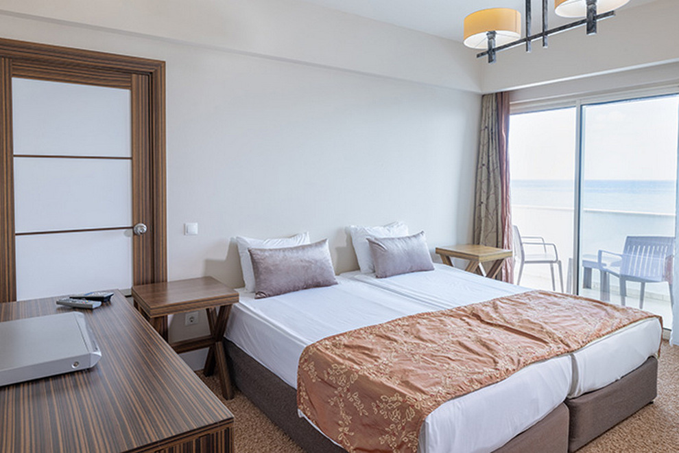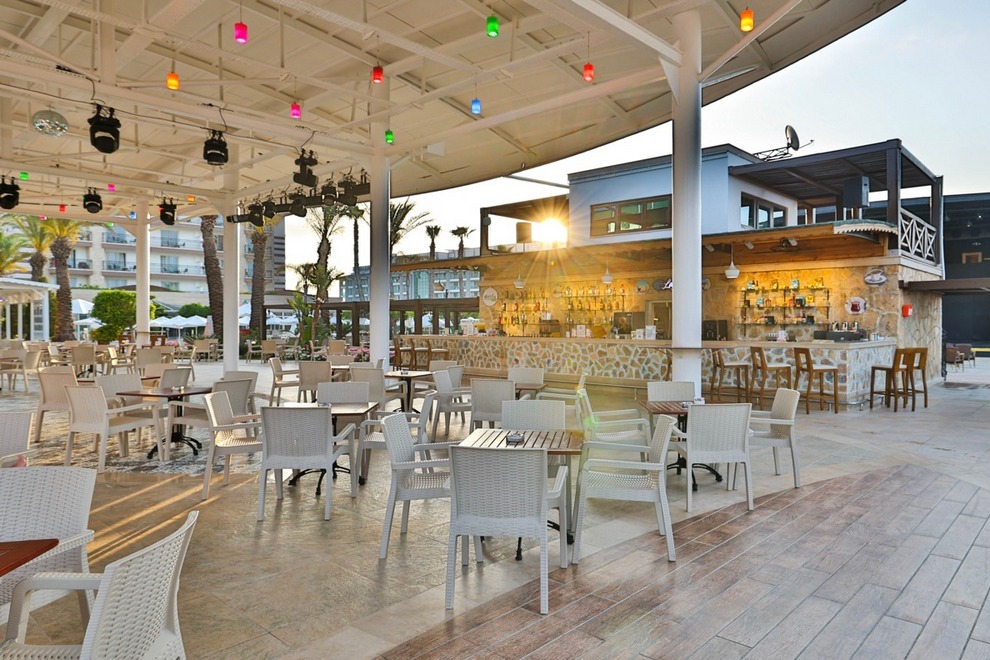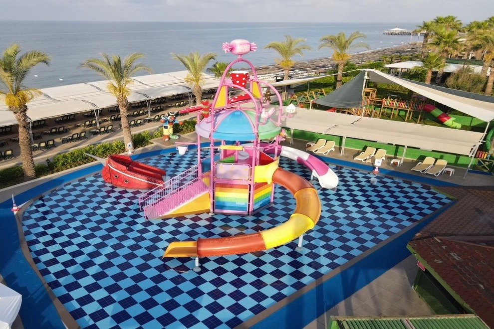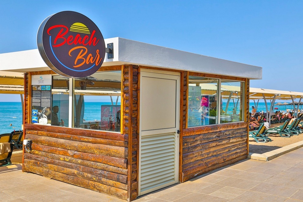 Хотелът има собствен пясъчно-чакълест плаж, дълъг 150 м. Бар на плажа. 2 открити басейна, закрит басейн, 3 водни пързалки (за възрастни). Чадъри, шезлонги и матраци на плажа и на басейна се ползват безплатно