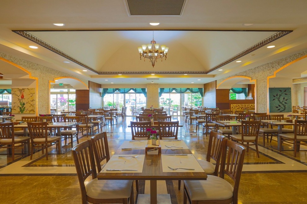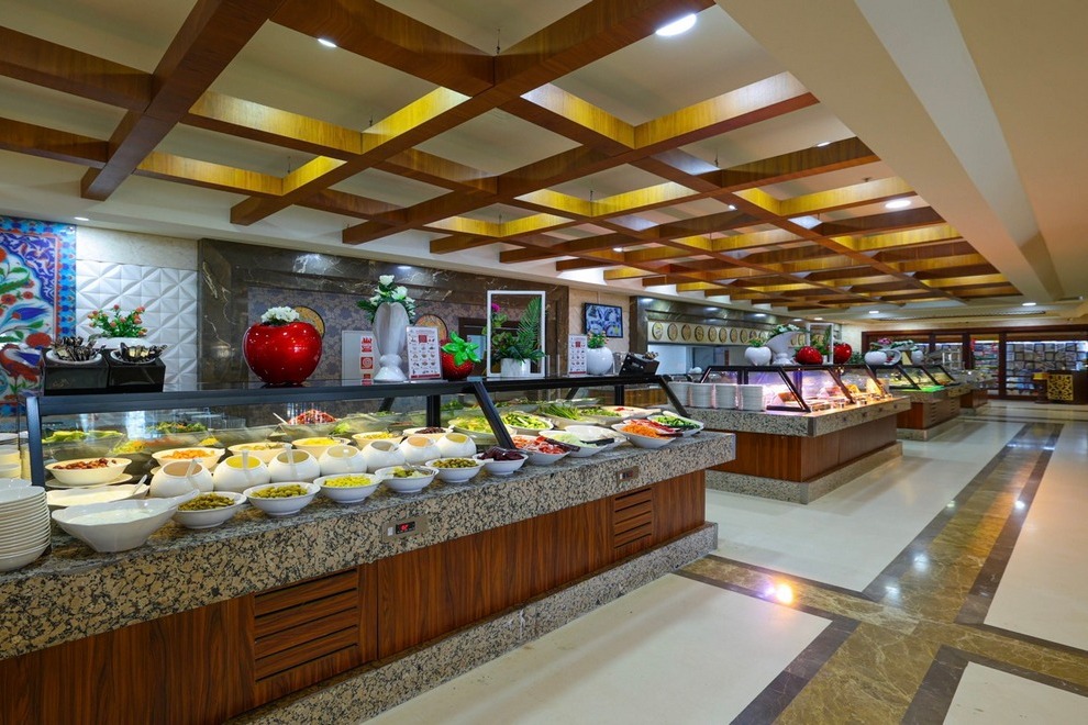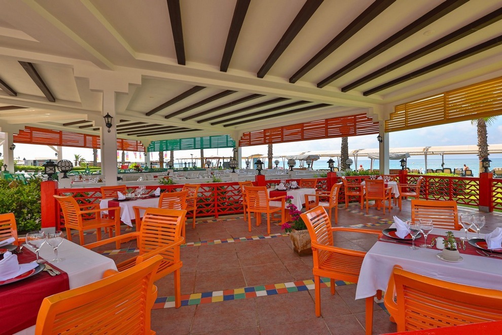 На разположение на гостите има основен ресторант и 4 а`ла карт ресторанта: турски, рибен, италиански и мексикански (с предварителна резервация, 1 безплатно посещение при 7-дневен престой). Освежаващи напитки и закуски се поднасят в 6 бара: лоби бар, бар при басейна, бар на плажа, Detox Bar, Wine and Beer House и снек бар, има и гьозлеме кът.