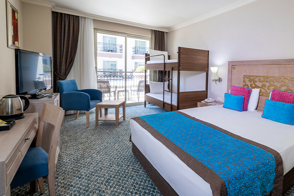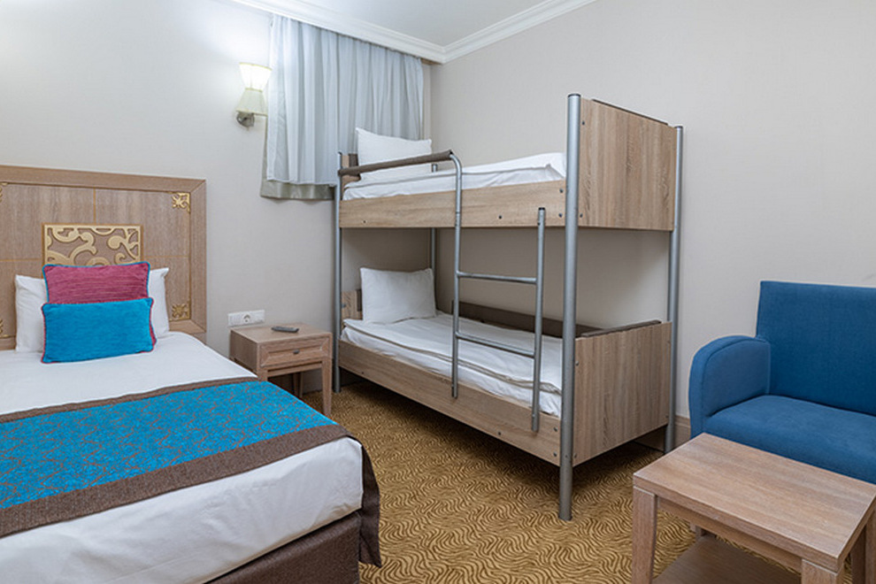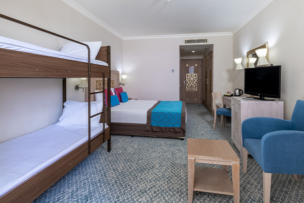 Bunk Bed Family Room - 2 отделни стаи, разделени с врата, в едната стая има 1 двойно легло, а в другата 1 единично и 1 двуетажно, 1 баня с душ, площ 40 кв-м, максимално настаняване 2 възрастни + 3 деца или 3 възрастни + 2 деца
