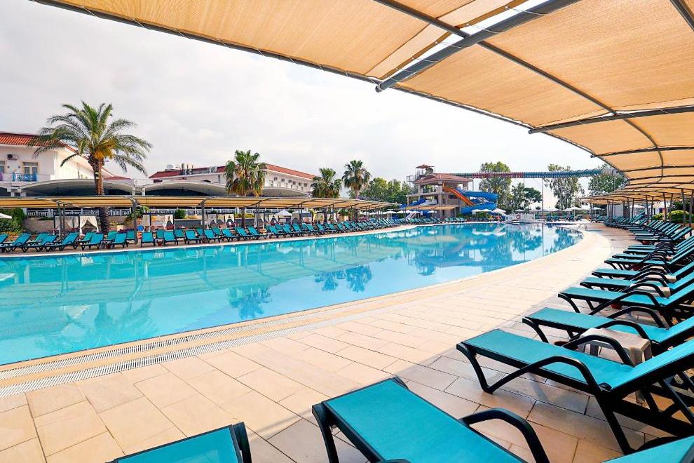 Собствен пясъчно-чакълест плаж на 500 метра от хотела. Осигурен безплатен транспорт до плажа по график. 2 открити и 1 закрит басейн, 3 водни пързалки. Чадъри и шезлонги на плажа и при басейна се ползват безплатно. Плажни кърпи - срещу депозит.