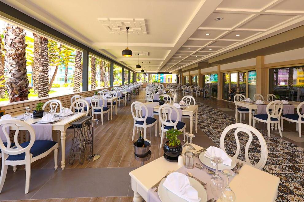 На разположние на гостите са основн ресторант и 4 а`ла карт ресторанта: турски и италиански (с предварително записване, за целия престой се полага 1 посещение на едни от тях - безплатно) рибен и мексикански (платени). Разнообразни напитки се предлагат в 8 бара (едният работи днонощно). Има също сладкарница и дискотека.
