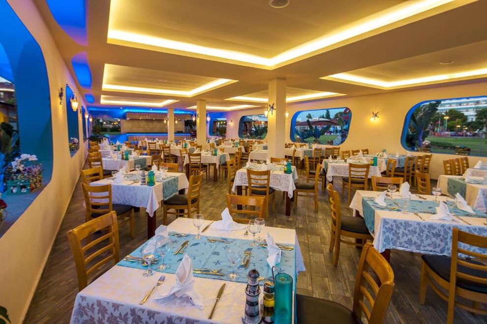 На разположение на гостите са основен ресторант и 3 а`ла карт ресторанта: рибен, мексикански, китайски (с предварителна резервация и срещу доплащане). Има също 3 снек ресторанта, гьозлеме, сладоледена къща и сладкарница. Разнообразни напитки се предлагат в 8 бара.