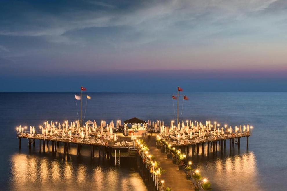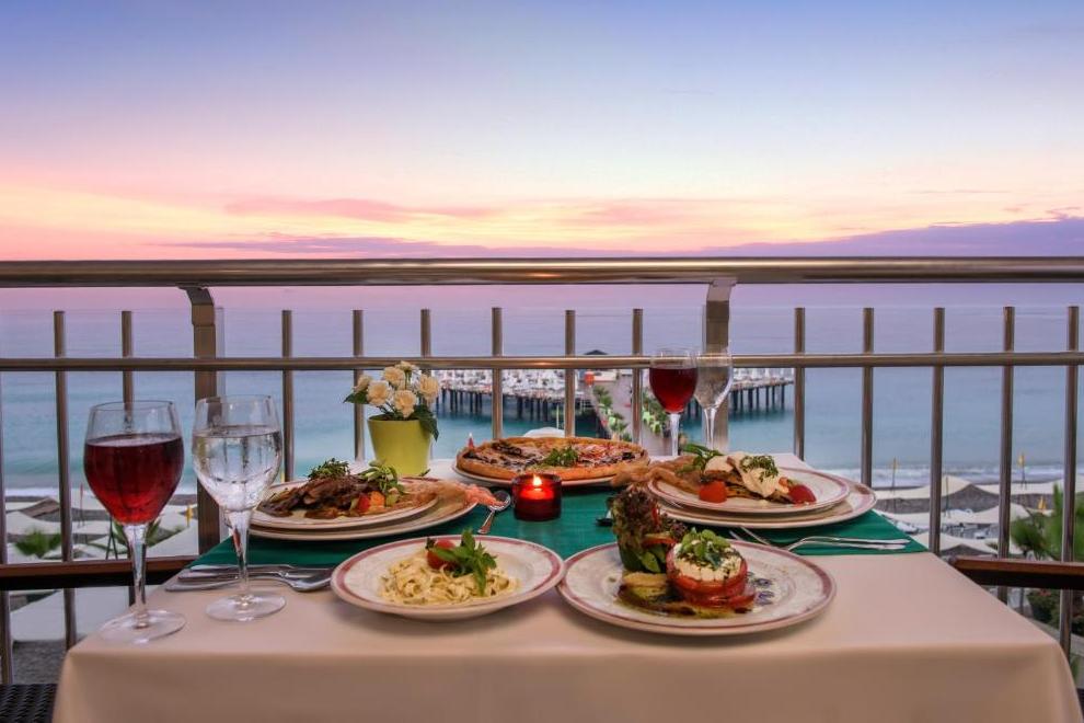 Хотелът има основен ресторант, 6 а`ла карт ресторант: Chınese House - китайски ресторант, Dolce Vita - италиански ресторант, Ottoman - турски ресторант, Mr. Fish - рибен ресторант и два японски - Sushi и Tepanyaki. . Освежаващи напитки се поднасят в 6 бара: Лоби бар (08:00-01:00 ч.); бар при басейна (10:00-23:00 ч.); Snack Bar на плажа (10:00-04:00 ч. (напитки и закуски); Витамин бар (09:00-23:00 ч.); Island Bar (10:00-00:00 ч.); Aqua Bar (10:00-17:30 ч.). All Inclusive - закуска, късна закуска, обяд, следобедна закуска, чай, кафе /17.00 ч./, вечеря, нощна закуска, сладкарски изделия и плодове през целия ден, всички местни алкохолни и безалкохолни напитки, няколко вида вносен алкохол от 10.00 – 24.00 ч. - безплатно.