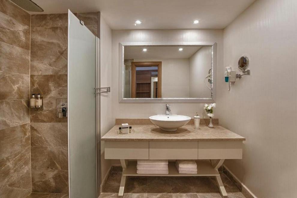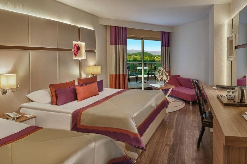 Хотелът се състои от основна 6-етажна сграда (6 асансьора) и четири 5-етажни допълнителни сгради. Посреща гостите си в 448 климатизирани стаи, от които 425 Standard Room (27 кв.м) и 23 Family Room (54 кв.м). Всички те са са оборудвани с телевизор, телефон, минибар, сейф, баня с вана/душ, сешоар, безплатен Wi-Fi, балкон. Стаите се почистват ежедневно, смяна на спалното бельо – 3 пъти в седмицата.