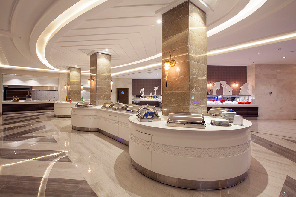На разположение на гостите има основен ресторант, 2 а`ла карт ресторанта, снек ресторант, сладкарница, бар и нощен клуб.