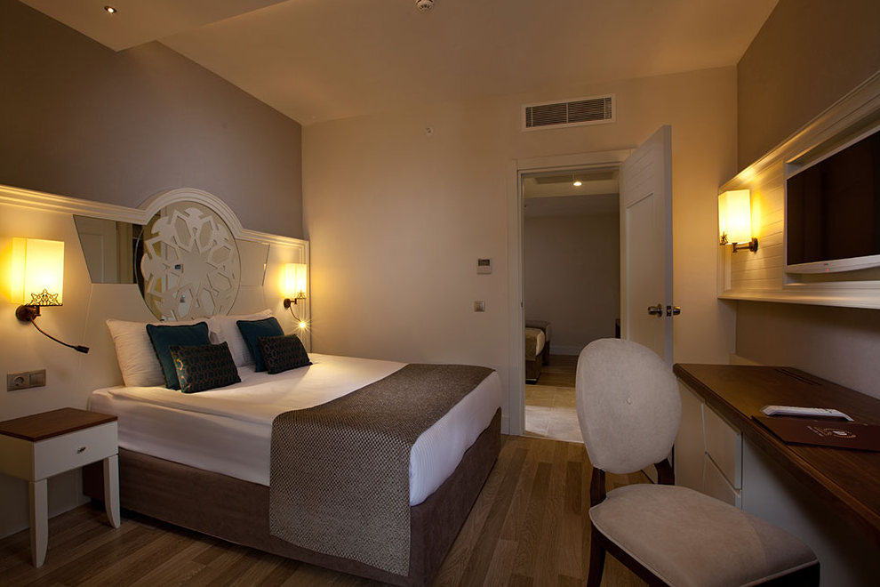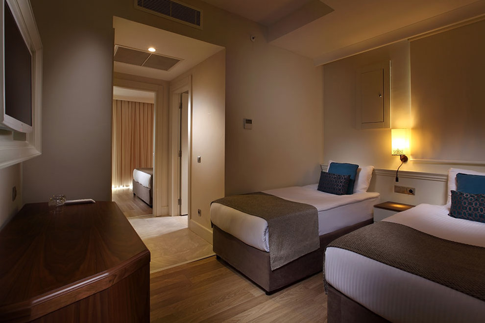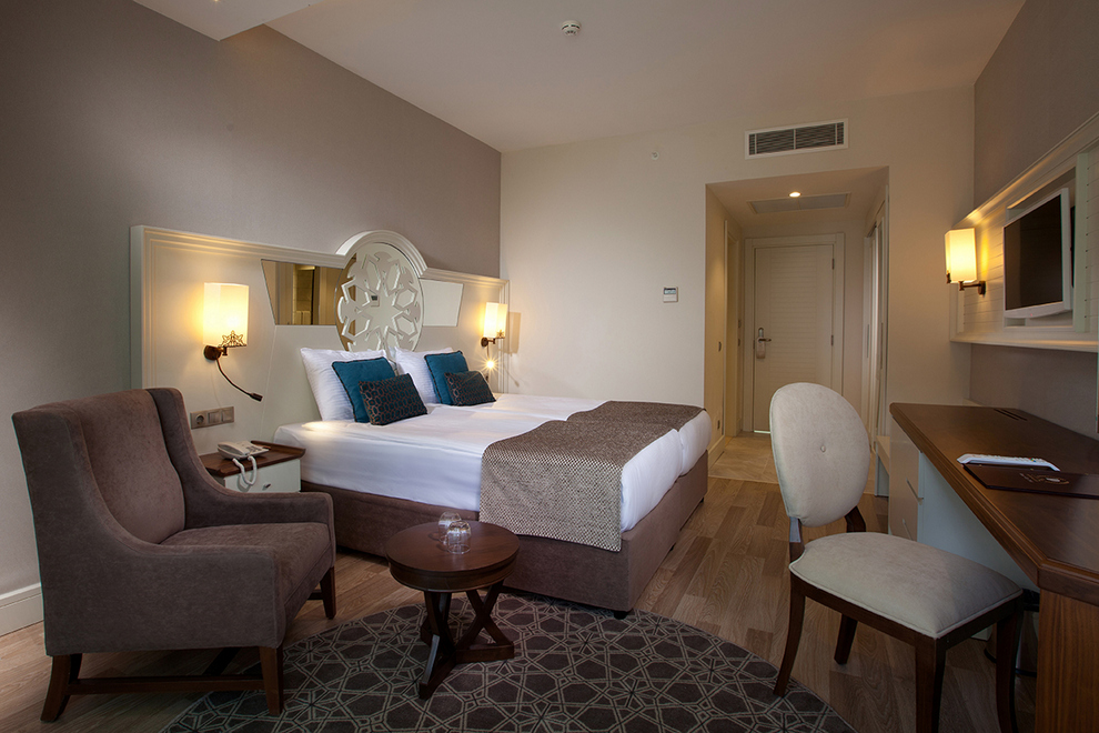 Хотелът се състои от една 5-етажна сграда (шест асансьора), в която са разпределени 177 климатизирани стаи: Standard room: 28 кв.м разполага със спалня с двойно легло или две единични легла, баня с душ, балкон. Family room: 40 кв.м две отделни стаи разделени с преходна врата, 1-ва спалня с двойно легло, 2-ра спалня с две единични легла, баня с душ, балкон. Всички стаи са оборудвани с телефон, телевизор, сейф (платен), минибар, сет за чай/кафе, баня с душ кабина/вана, сешоар, тоалетни принадлежности. Стаите се почистват ежедневно, спалното бельо се сменя три пъти седмично.