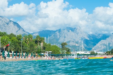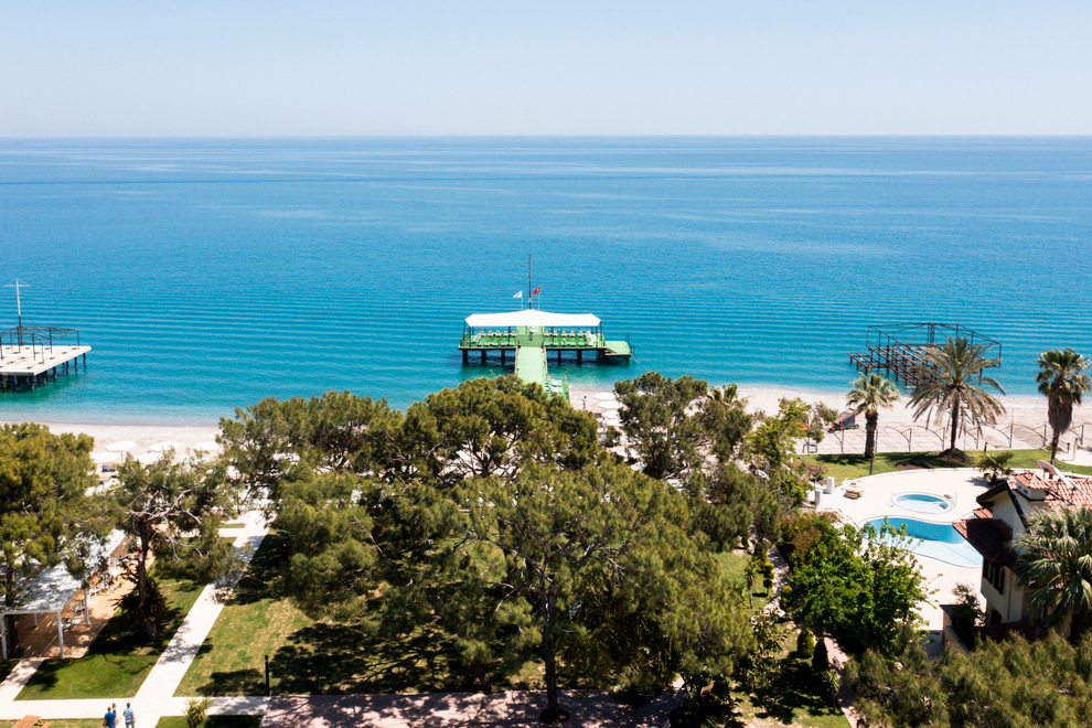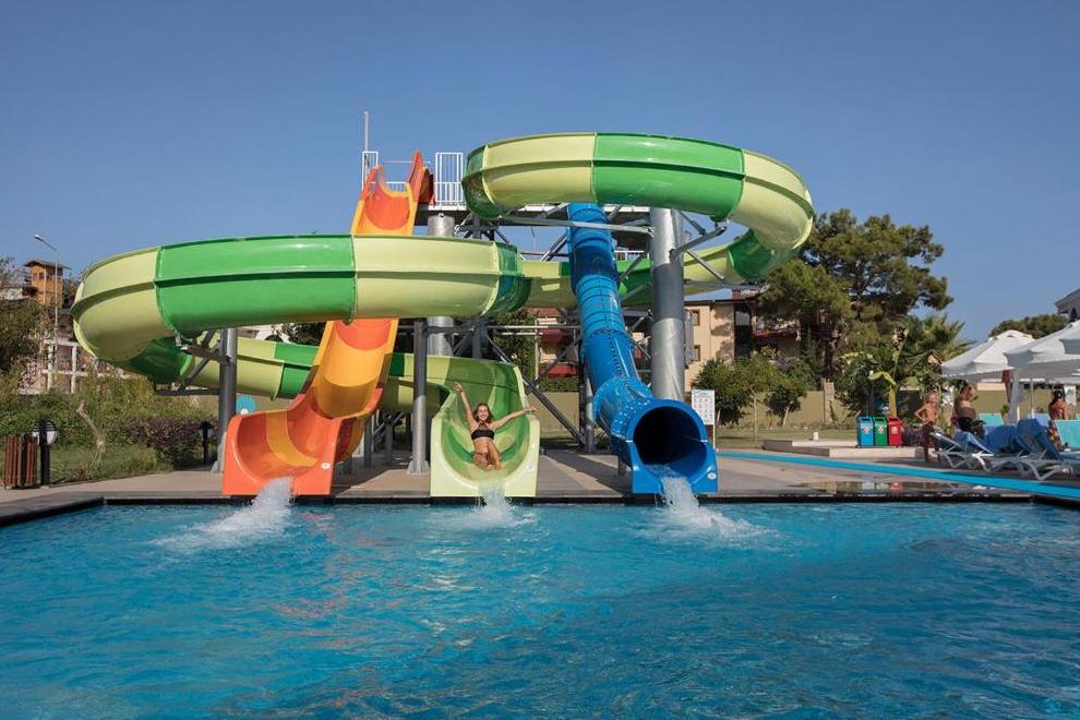 Собствен пясъчно-чакълест плаж, който се намира от другата страна на пътя. Кей и бар на плажа (09:00 ч. - 23:30 ч.). За удобство на своите гости предлага 4 открити и 1 закрит басейн, аквапарк. Шезлонги, чадъри, плажни кърпи на плажа и при басейна се предоставят безплатно.