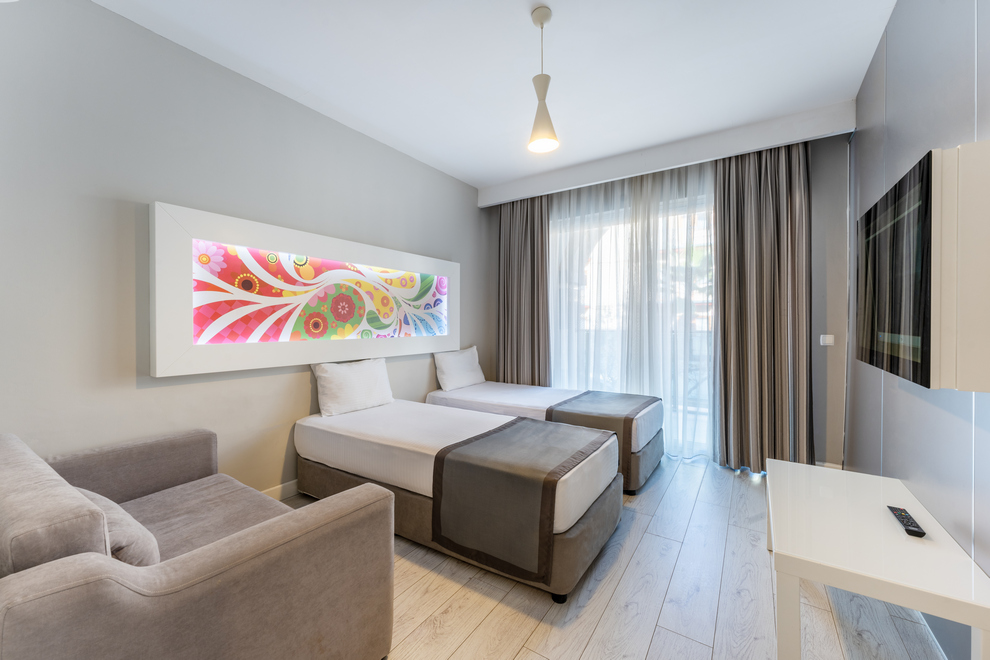 Standard Room в Garden Block - 1 двойно и 1 единично легло, площ 26 кв.м, максимално настаняване 3 възрастни или 2 + 1 дете