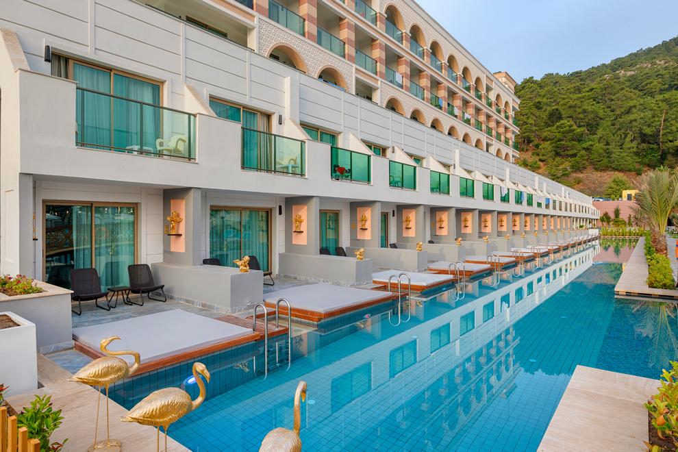 Swim-Up Room с директен достъп до басейна - 1 двойно легло и разтегателен диван, площ 26 кв.м, максимално настаняване 3 възрастни
