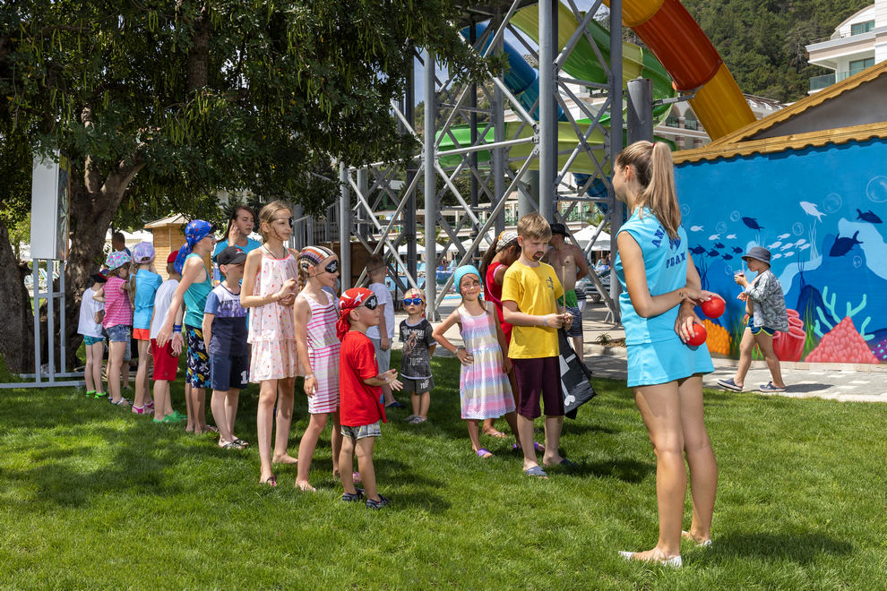 За децата има анимация, детски бюфет, детски столчета, детска площадка, игрална зона, миниклуб (4-12 год.), 2 открити и 1 закрит басейн, минидиско, детегледачка (платено).