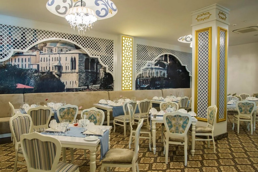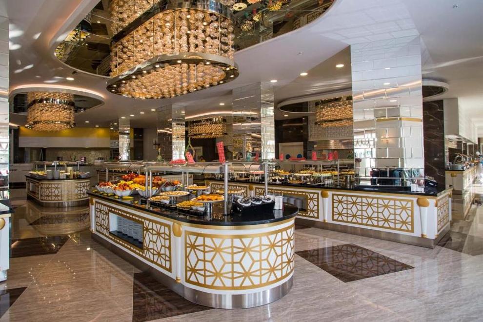 На разположение на гостите са основен ресторант с вътрешен двор, който предлага закуска, брънч, обяд, вечеря и нощна супа, и 4 а`ла карт ресторанта: турски, рибен, италински, китайски (с предварително записване, посещение на 1 безплатно, при настаняване мин. 5 нощувки). Разнообразни напитки се предлагат в 8 бара - Лоби бар, бар край басейна, бар на плажа, бар "Дюден", сладкарница, два снек-бара, Витамин бар.