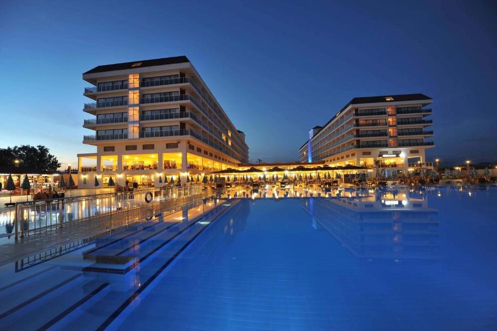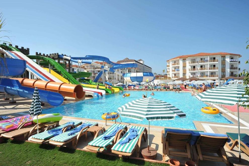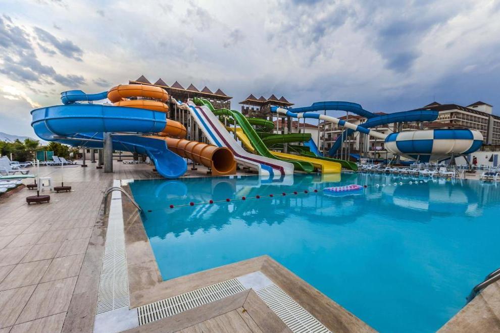 хотелът разполага със собствен плаж. Има 6 открити и 2 закрити басейна , аквапарк с 9 пързалки.