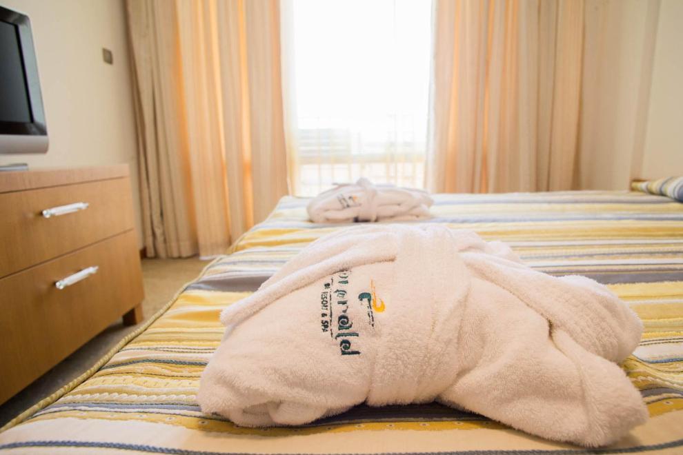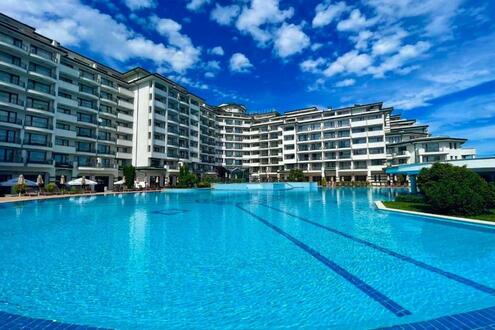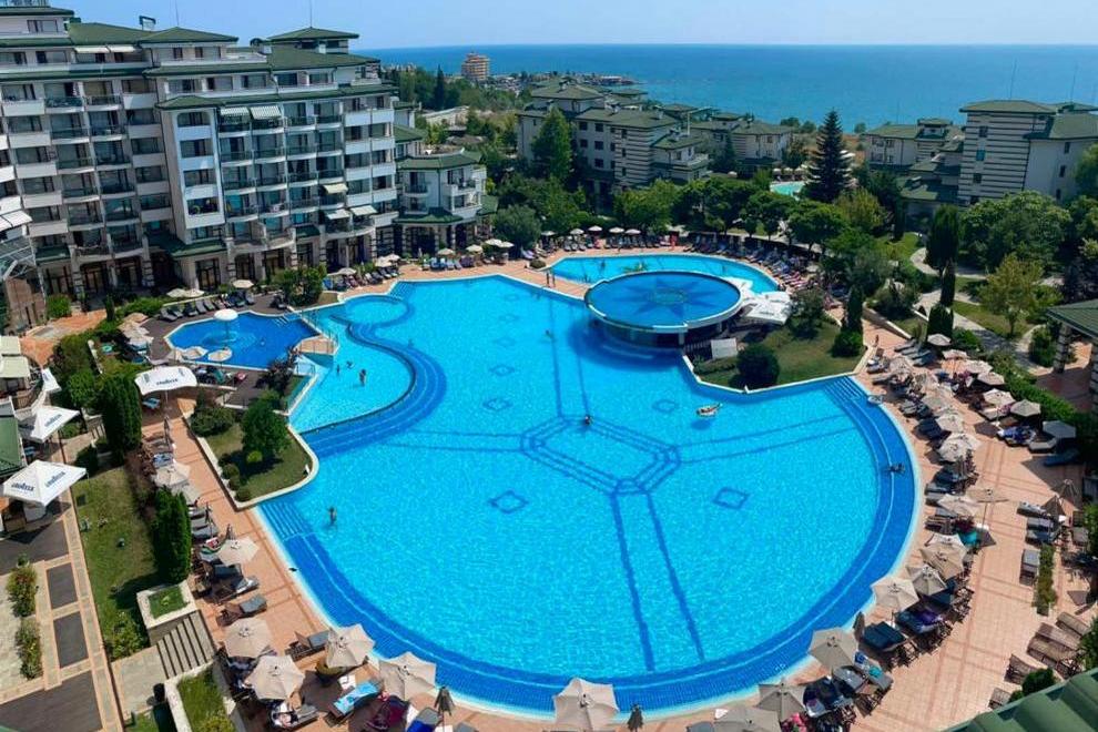 Хотелът е на първа линия. Има три открити и един закрит басейн.