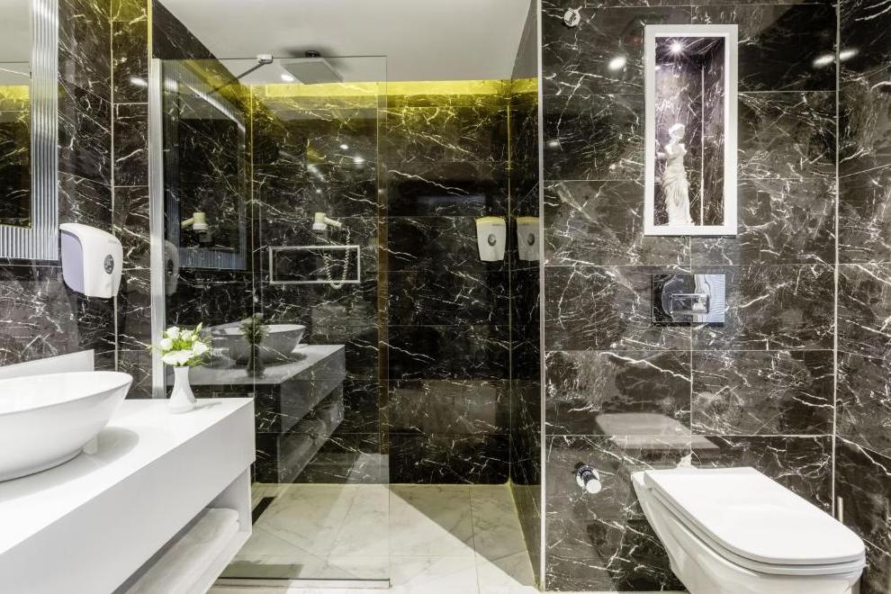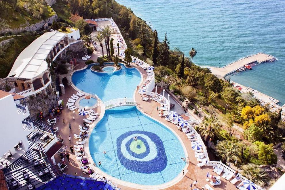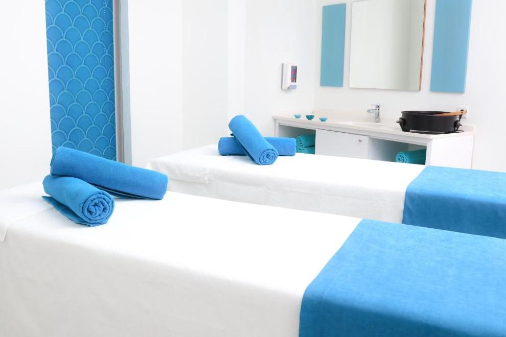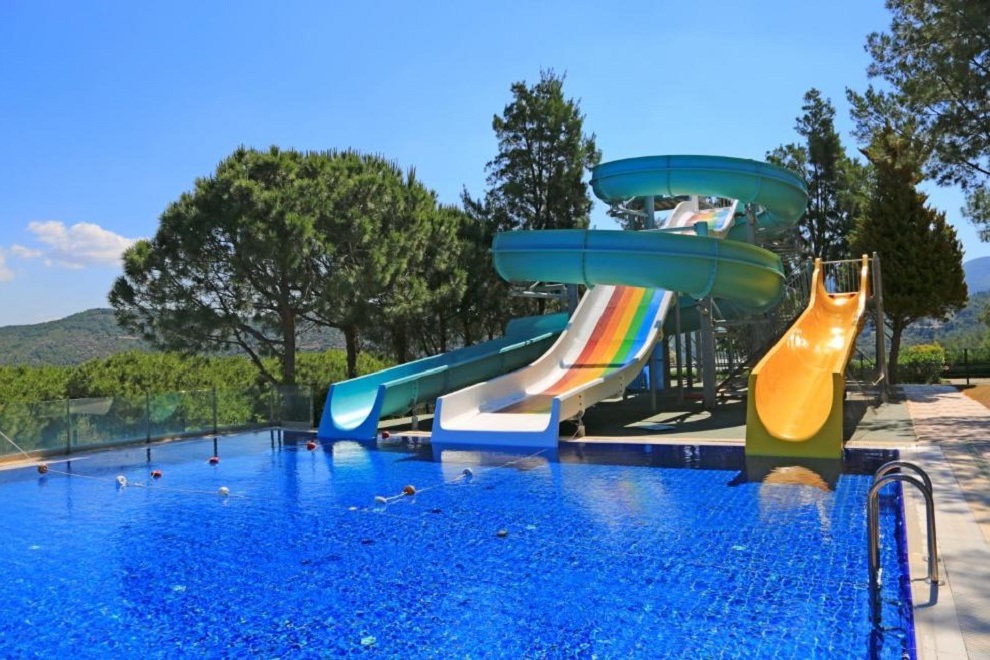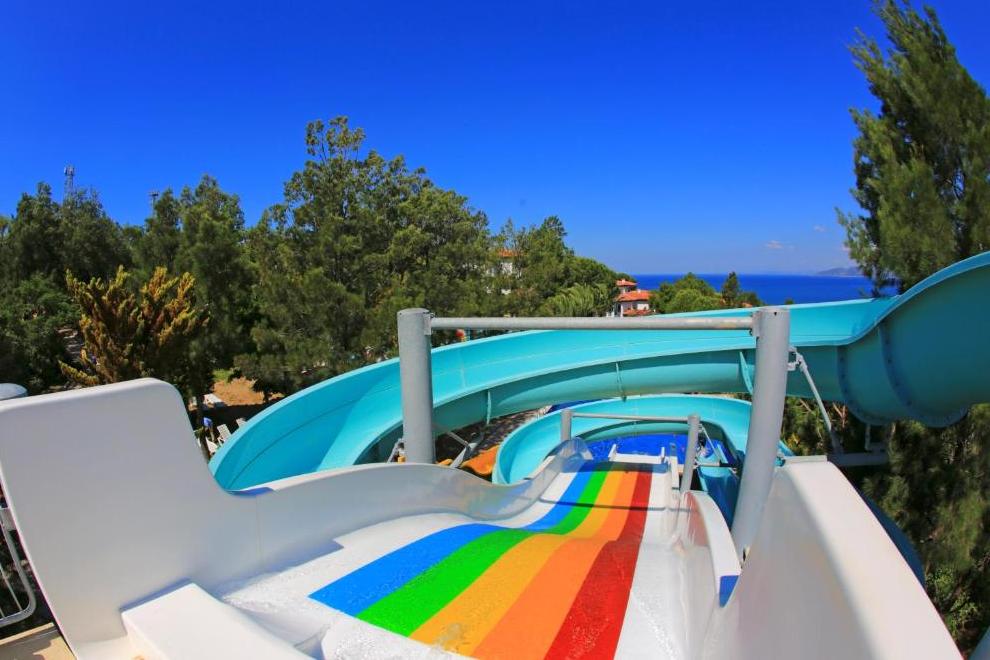 Собствен пясъчно-чакълест плаж с платформа и кей. Бар на плажа. 3 открити басейна с прясна вода, неотопляеми, 529 кв.м, 970 кв.м. 1 закрит басейн с прясна вода, 72 кв.м (затворен през юли и август). 3 водни пързалки (неотопляеми) + детски аквапарк.