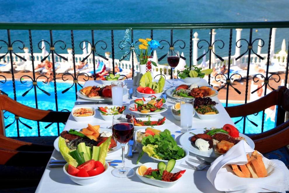На разположение на гостите са основен ресторант и 3 а`ла карт ресторанта: La Romantica - италиански, рибен ресторант (13+) и Agora - турски ресторант. Разнообразни напитки се предлагат в 5 бара, единият работи денонощно.