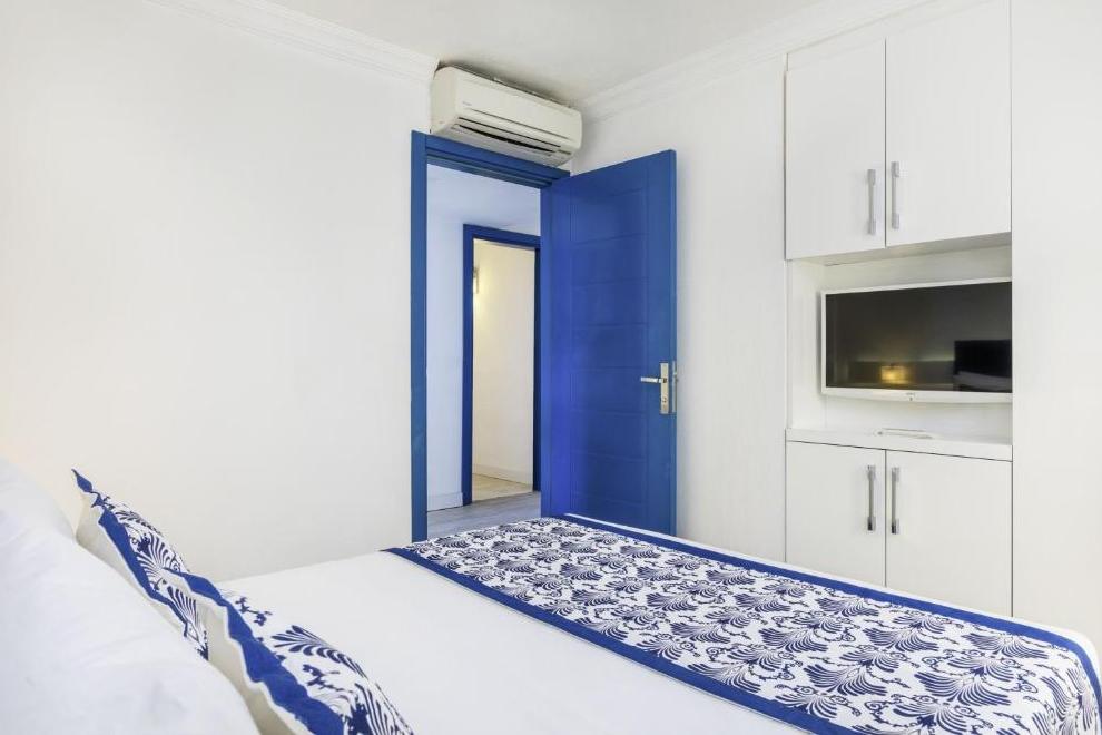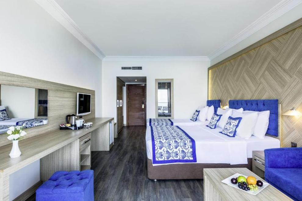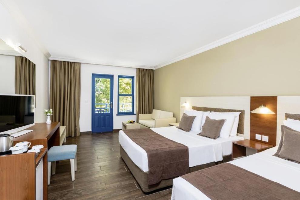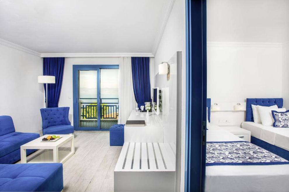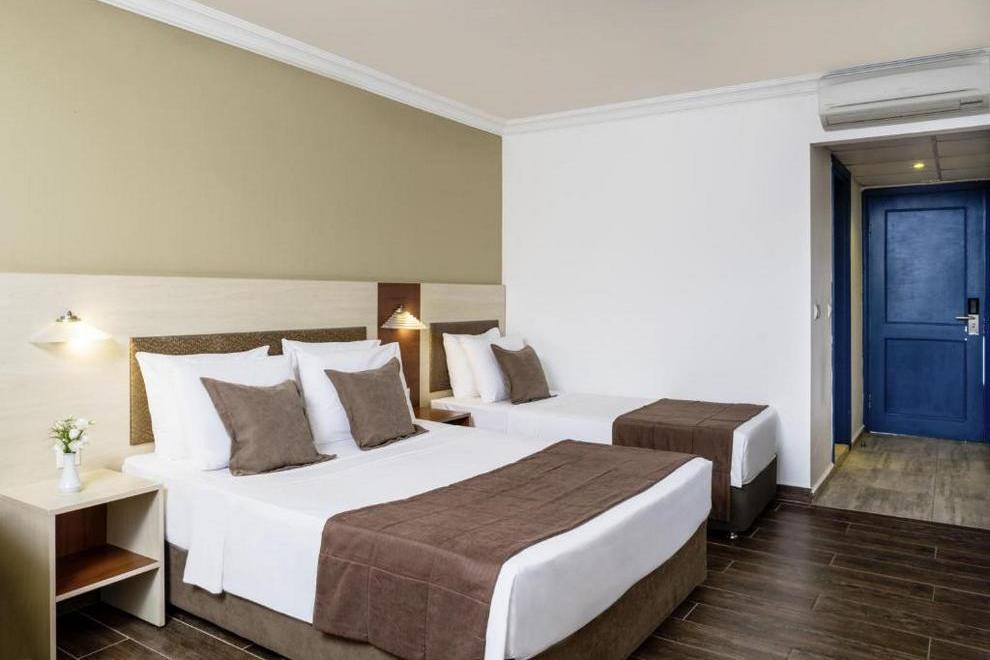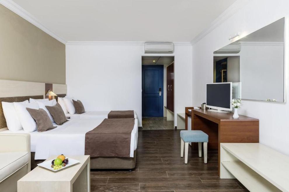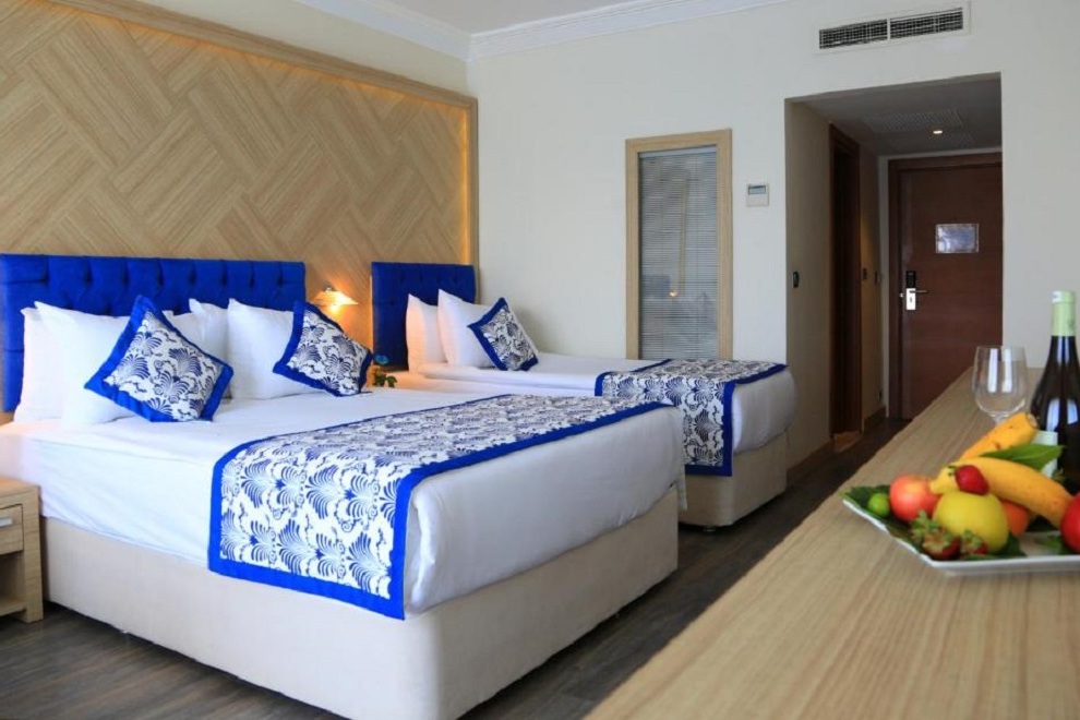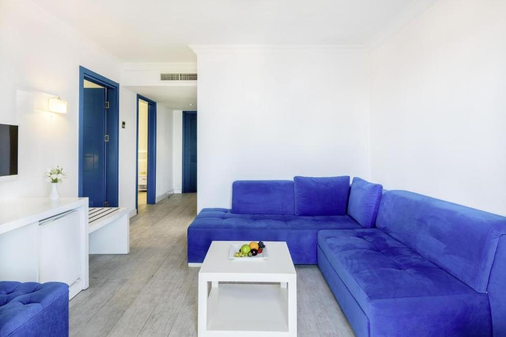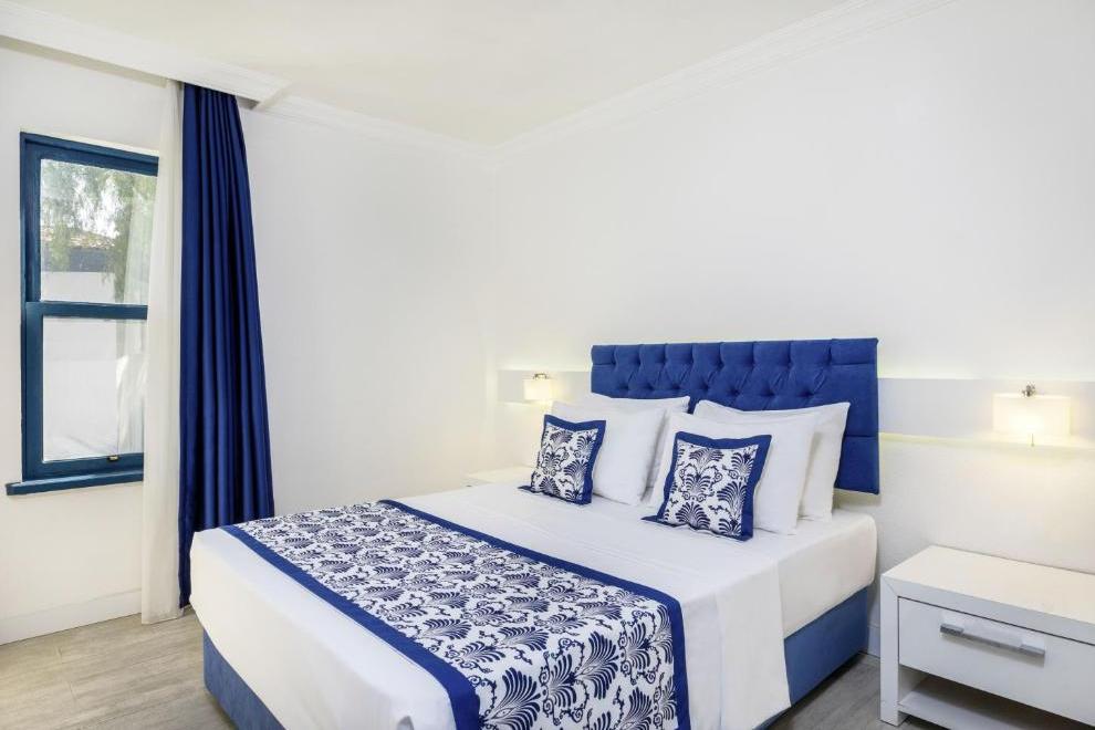 Хотелът се състои от 1 основна сграда (8 етажа), комплекс от бунгала (2 и 3 етажа, без асансьор), в които са разпределени 352 климатизирани стаи. От тях н хотелската част: 96 Superior Sea View Rooms (25 кв.м) и 48 Junior Suites Sea View ( 32 кв.м). В клубната част: 142 Bungalow Garden View (25 кв.м), Family Room Bungalow Garden View ( 2 спални, 30 кв.м), Family Suite Bungalow Garden View ( 2 спални, всекидневна, 41 кв.м).Всички стаи са оборудвани с телевизор, телефон, сет за чай/кафе, минибар (безплатен), сейф (безплатен), баня с душ, сешоар, балкон или тераса, Wi-Fi. Стаите се почистват всеки ден, смяна на бельото и кърпите – 2 пъти в седмицата..