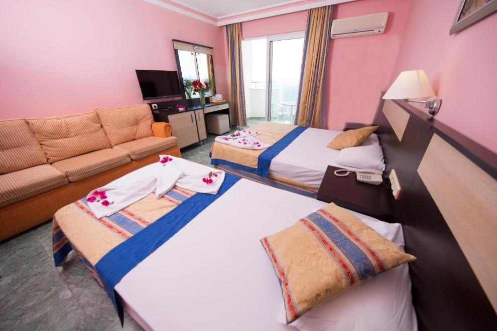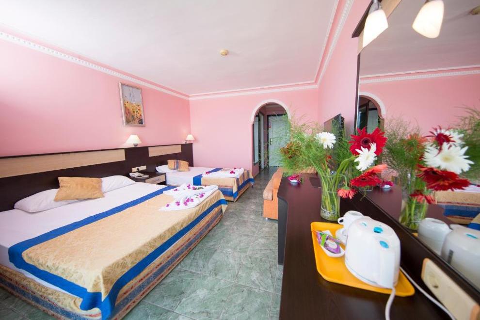 Хотелът има собствен плаж на 100 м от сградата и 2 открити басейна, единият с водна пързалка.