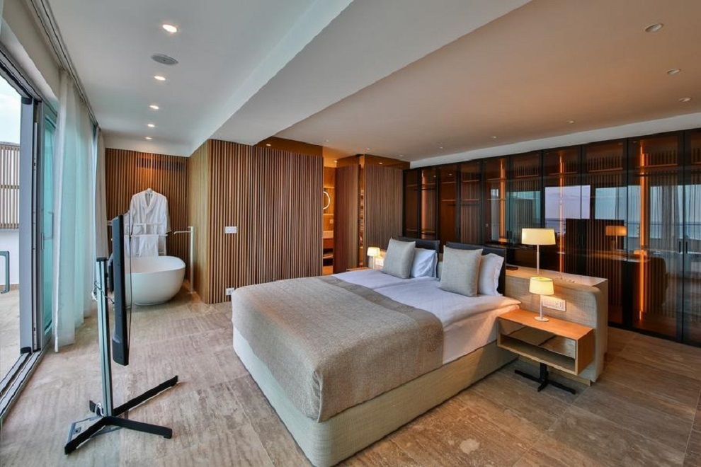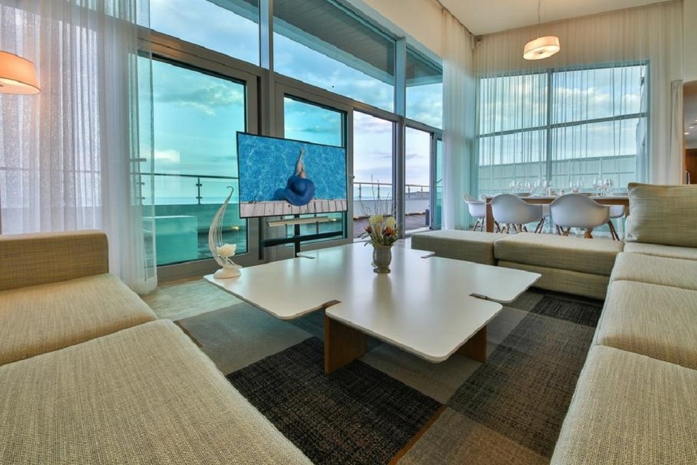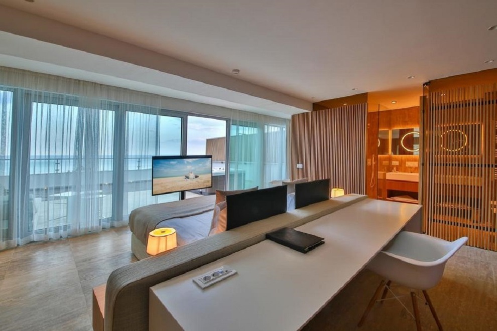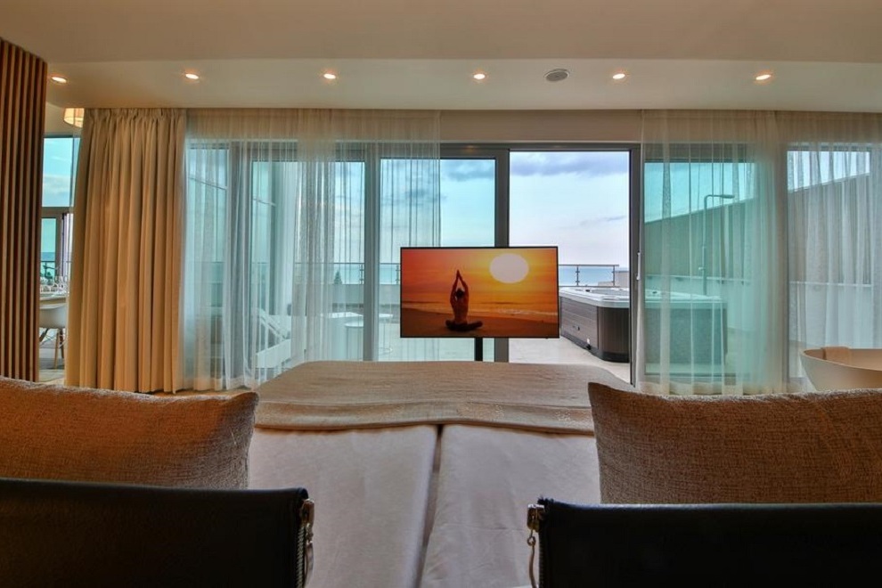 Хотелът разполага със собствена плажна зона. В цената на стаята са включени 2 шезлонга и чадър. Има също един вътрешен и един външен басейна.