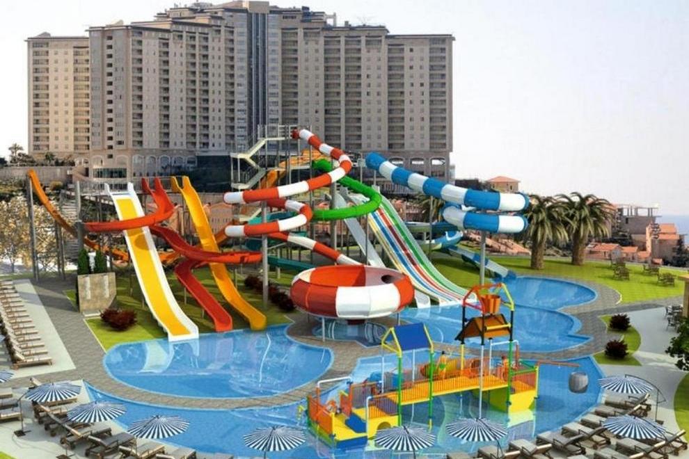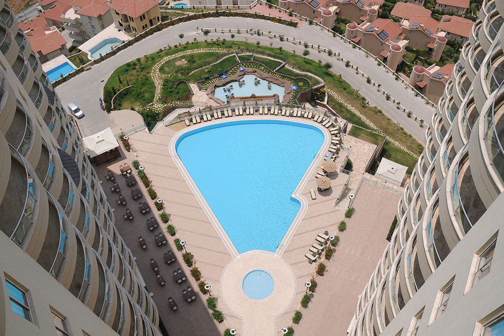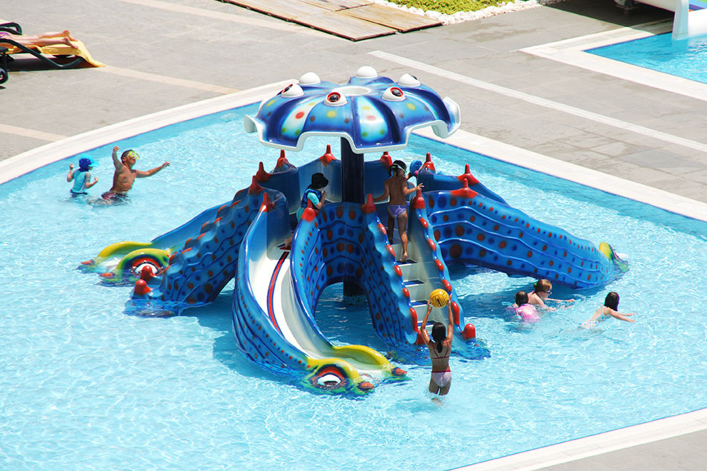 Комплексът разполага със собствен частен плаж в близост. Осигурен е безплатен автобус до плажа. Има 6 басейна, както закрити, така и открити (единият от които е отопляем), отделна зона за плуване за деца.