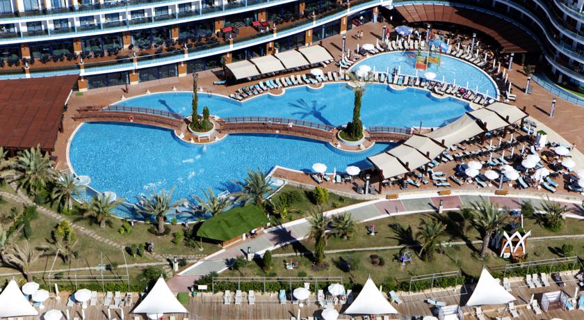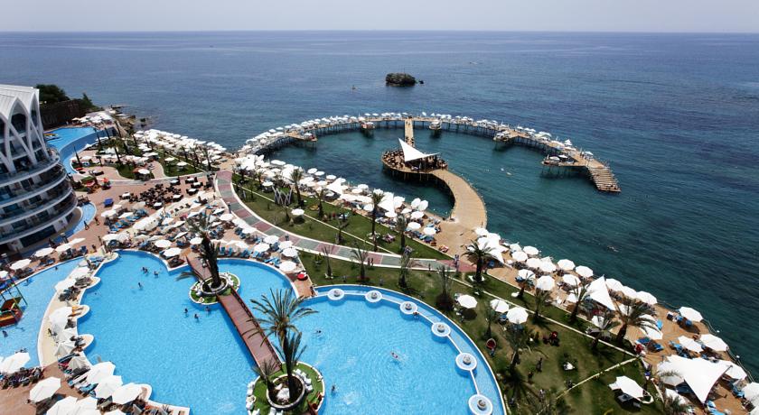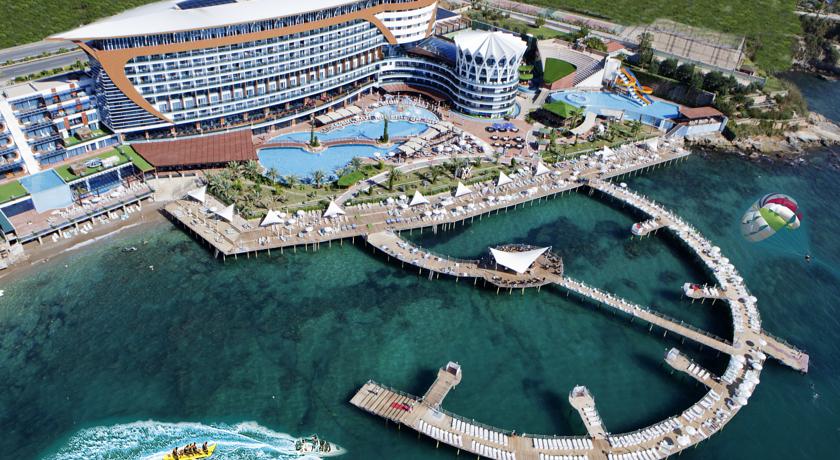 Разположен на брега на морето. Водопадът Манавгат е само на 30 километра от хотела, а центърът на град Алания е на 30 минути с кола.