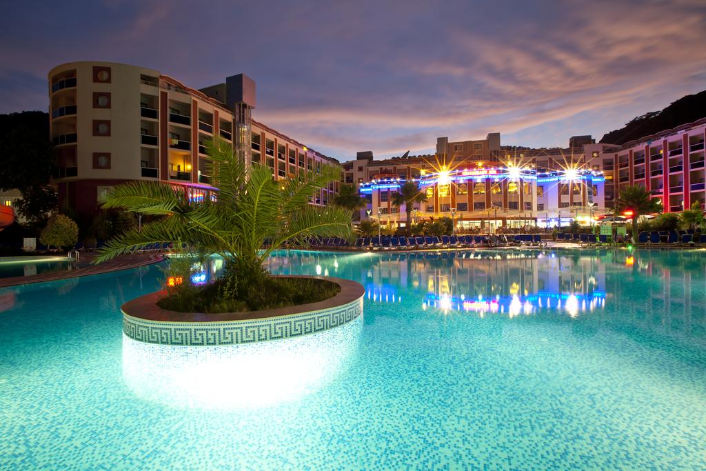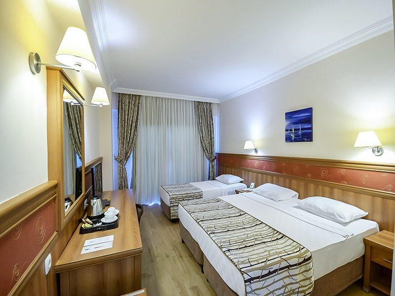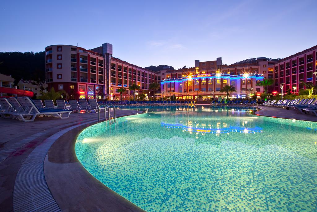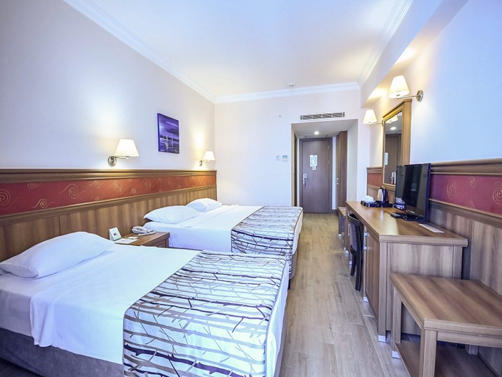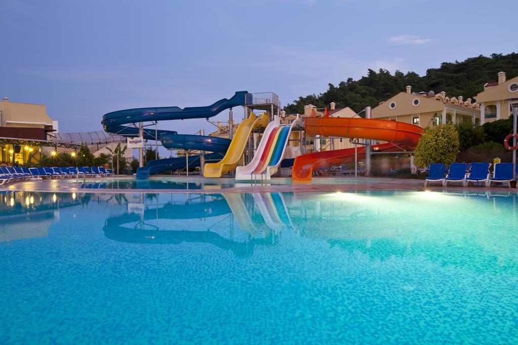 Хотелът разполага със собствен пясъчен плаж (в Ичмелер), има 2 външни басейна. Чадъри, шезлонги, матраци – безплатно.