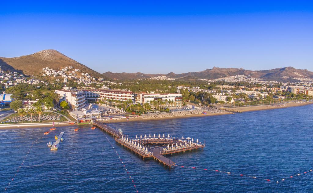Хотелът е разположен на 55 км от летището на Бодрум, на 22 км от центъра на Бодрум, на 4 км от селището Тургутрейс, на брега на морето. Напълно реновиран през 2016 година.