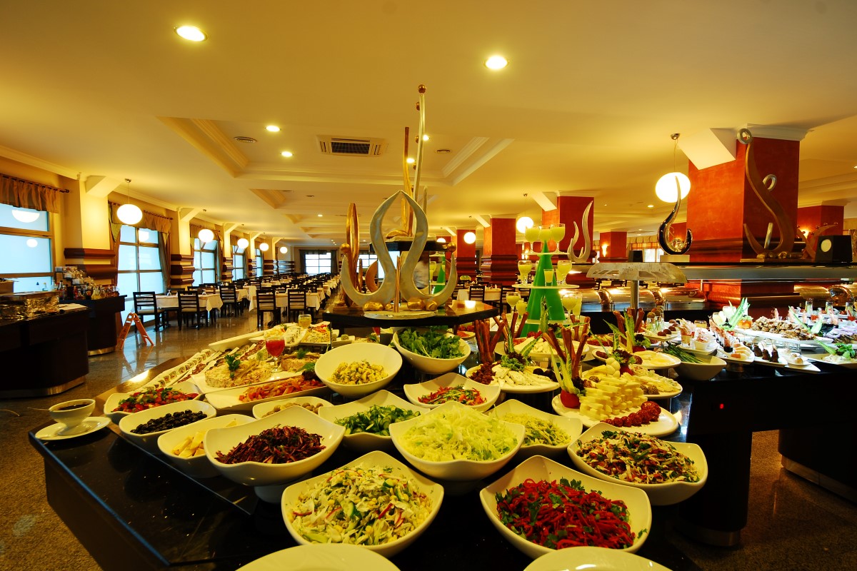 Хотел Grand Pasa предоставя на гостите си основен и a-la-carte ресторант (интернационална кухня – турска, френска и вегетарианска), кафетерия, лобибар, снекбар и воден бар. Хотела също така разполага и с бизнес център в градината, фризьор, пералня (+ гладене), химическо чистене, доктор, детегледачка, мини клуб (04-11 години), магазини за подаръци и бижута, както и 24 часов room service.
