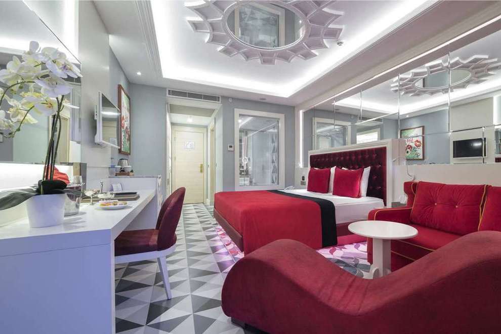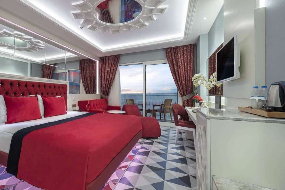 Love Standard Room с изглед море/ страничен изглед към морето/изглед към сушата, разполага с 1 двойно легло, 1 диван, баня с душ, балкон, площ 35 кв.м, максимално настаняване 2 възрастни 18+