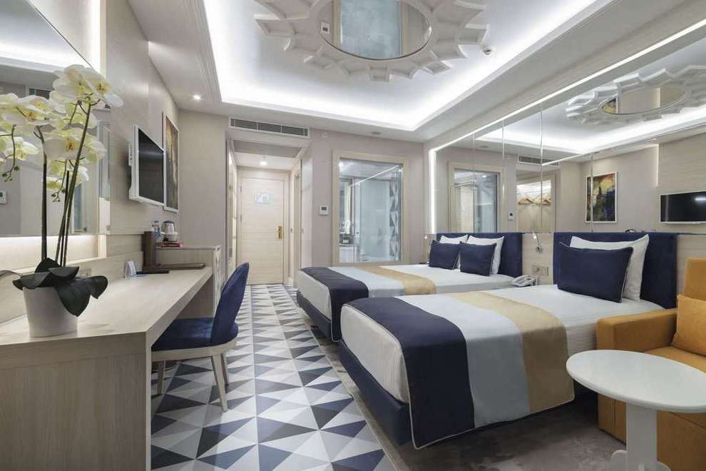 Всички стаи са оборудвани с централен климатик с индивидуално управление, телефон, телевизор със сателитни канали, минибар (безплатно зареждане веднъж дневно), сет за чай/кафе, сейф, баня с душ, сешоар, чехли, балкон, Wi-Fi.