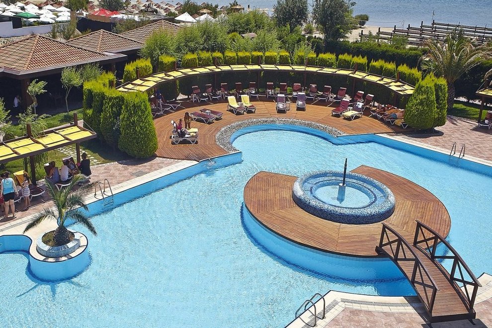 Собствен пясъчен плаж. Хотелът разполага и с открит плувен басейн и басейн за най-малките, които работят сезонно. Чадъри, шезлонги, хавлии за плаж се предоставят безплатно.
