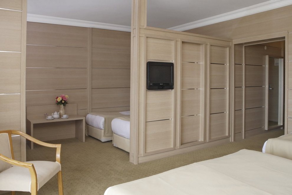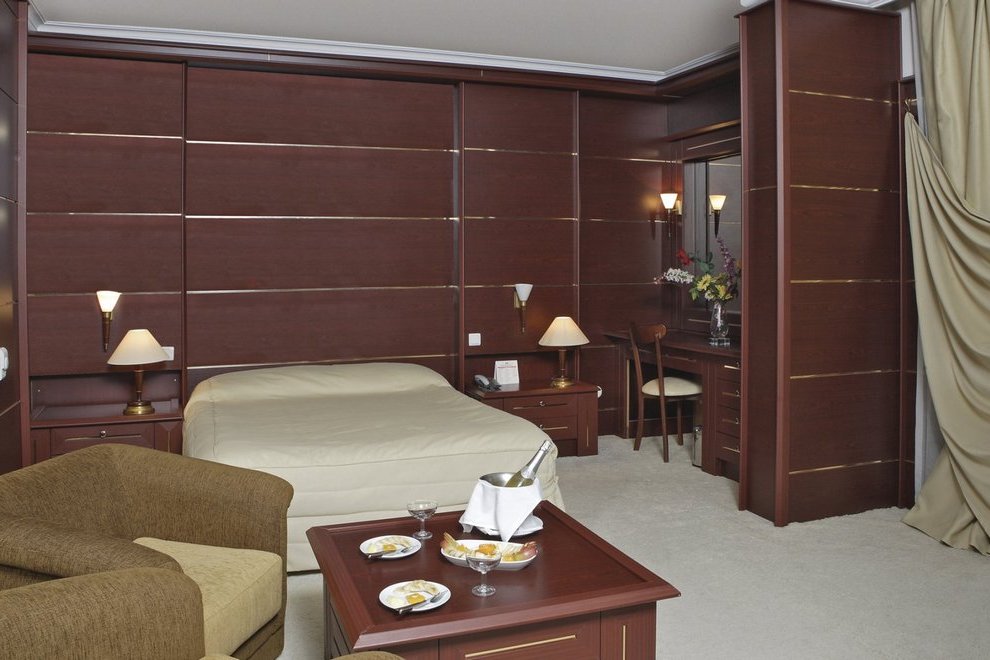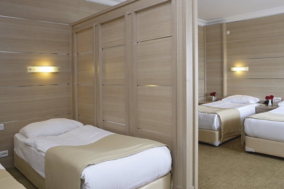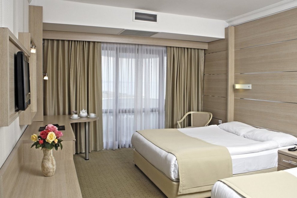 Хотелът посреща гостите си в 275 климатизирани стаи, от които 13 фамилни, 1 апартамент и 6 свързани стаи с общ капацитет от 600 легла. Стандартните стаи са с площ от 28 кв.м и се състоят от 1 двойно легло или 2 двойни легла и едно единично легло, или само 2 единични легла, при поискване. Семейните стаи са с площ от 42 кв.м и се състоят от 1 двойно легло, 3 единични легла или 1 двойно легло и 2 единични легла. Суитите са с размер 42 кв.м и разполагат с 1 двойно легло и три единични легла или 1 двойно легло и две единични легла. Всички стаи разполагат с балкон, централна климатизация, самостоятелна баня със сешоар, сателитна телевизия, сейф и мини бар. Стаите се почистват всеки ден, кърпите и спалното бельо се сменят три пъти в седмицата.