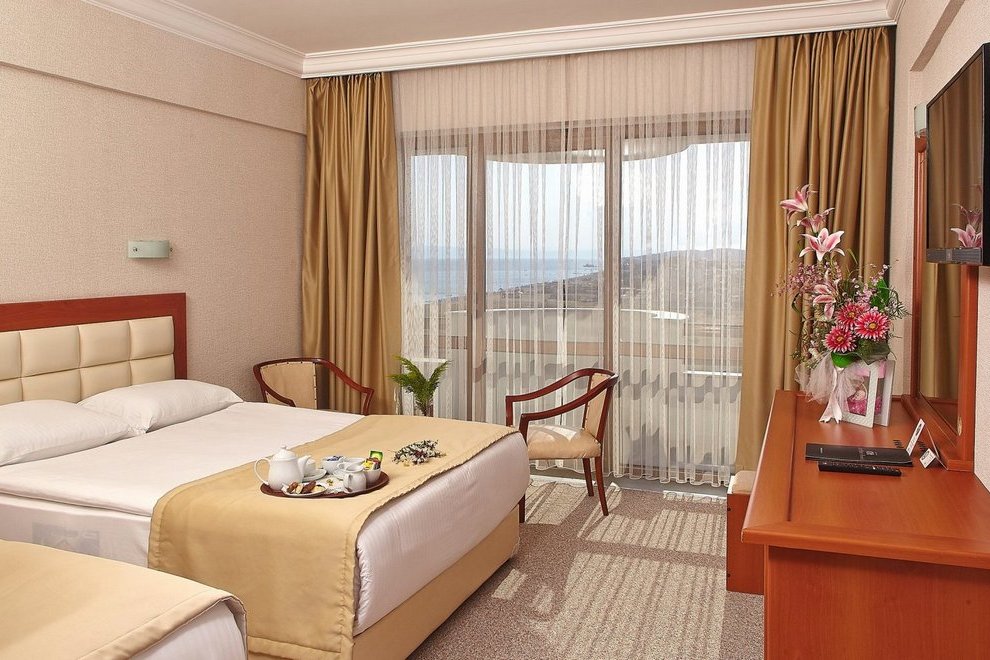 Grand Hotel Temizel 5* e разположен на плажа Саръмсаклъ в Айвалък, само на 8 км от центъра на града и на 160 км от летището в Измир.
