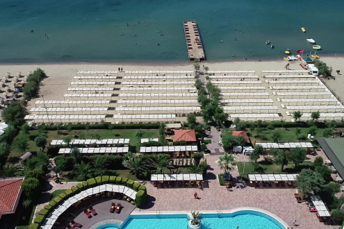 Grand Hotel Temizel 5* e разположен на плажа Саръмсаклъ в Айвалък, само на 8 км от центъра на града и на 160 км от летището в Измир.