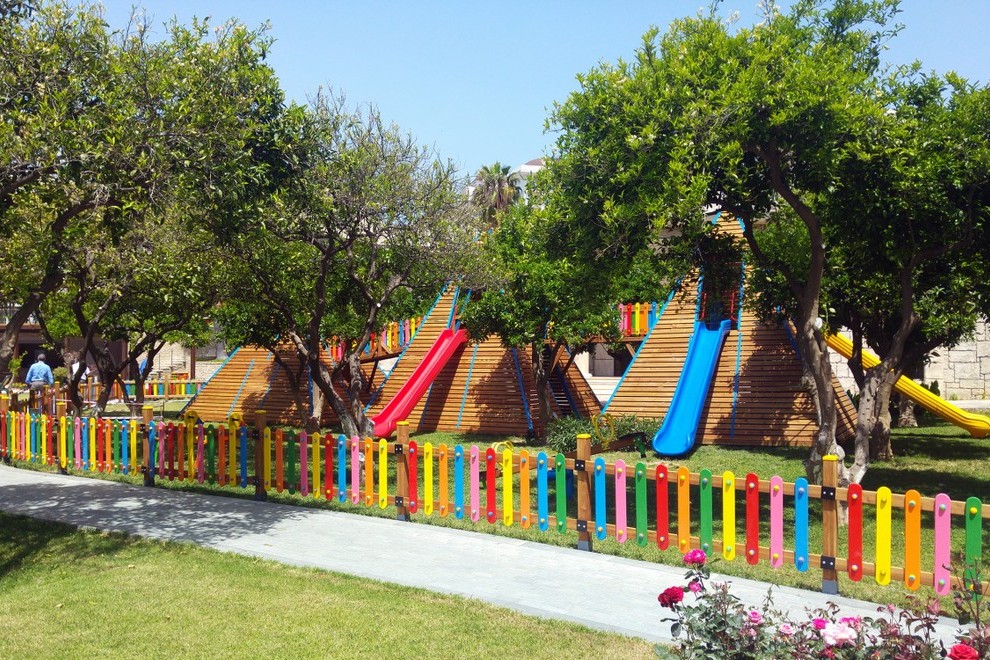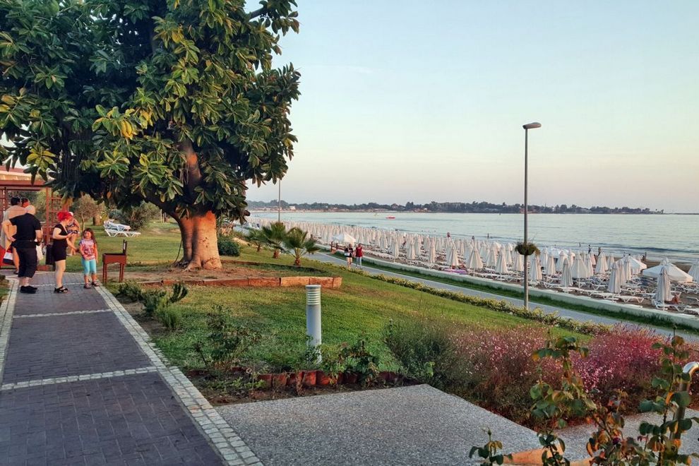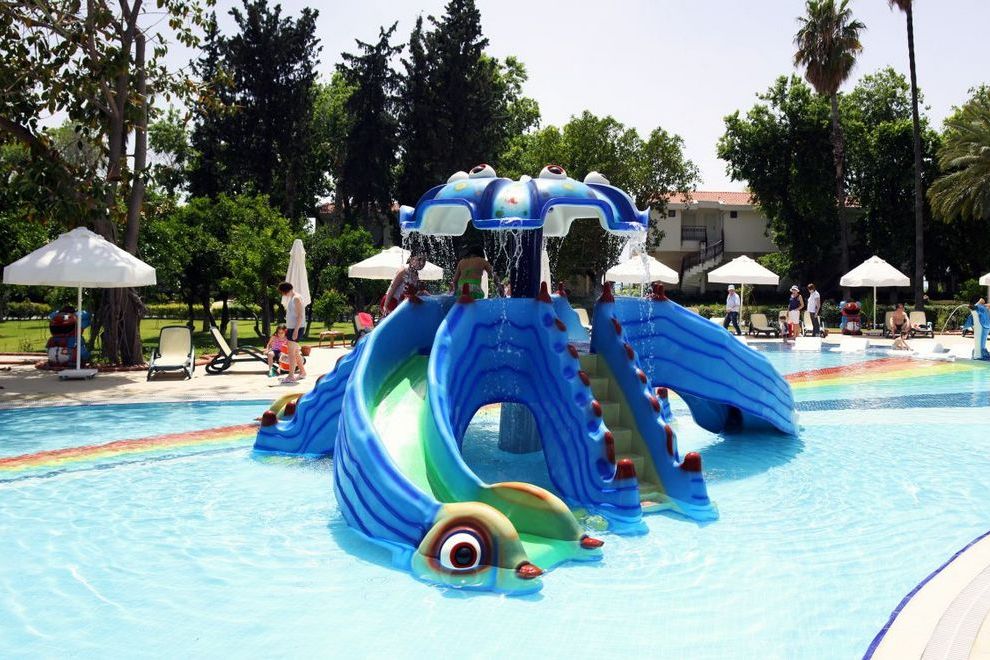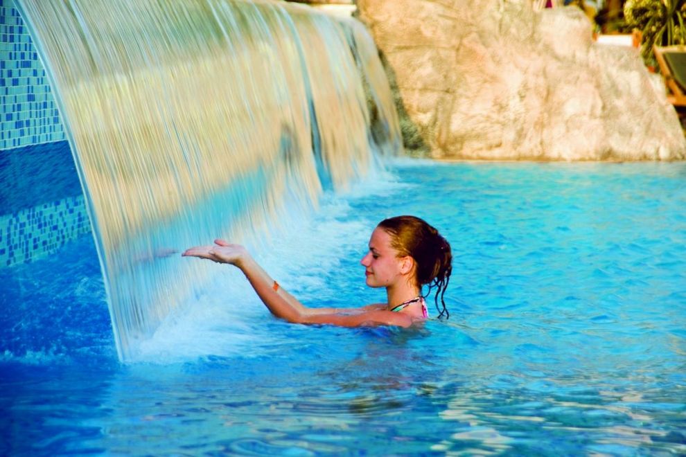 Хотелът разполага със собствен, дълъг 400 м плаж, който е на пешеходно разстояние. За удобството на своите гости предлага 4 открити басейна (неотопляеми), площ 1224 кв.м, 840 кв.м, 210 кв.м, 200 кв.м. 2 закрити басейна (отопляеми през зимата). Аквапарк (6 водни пързалки), работно време 10:00-12:00 ч. и 14:00-16:00 ч. Водните пързалки работят в зависимост от метеорологичните условия. Шезлонгите, чадърите, матраците, плажните кърпи са безплатни.